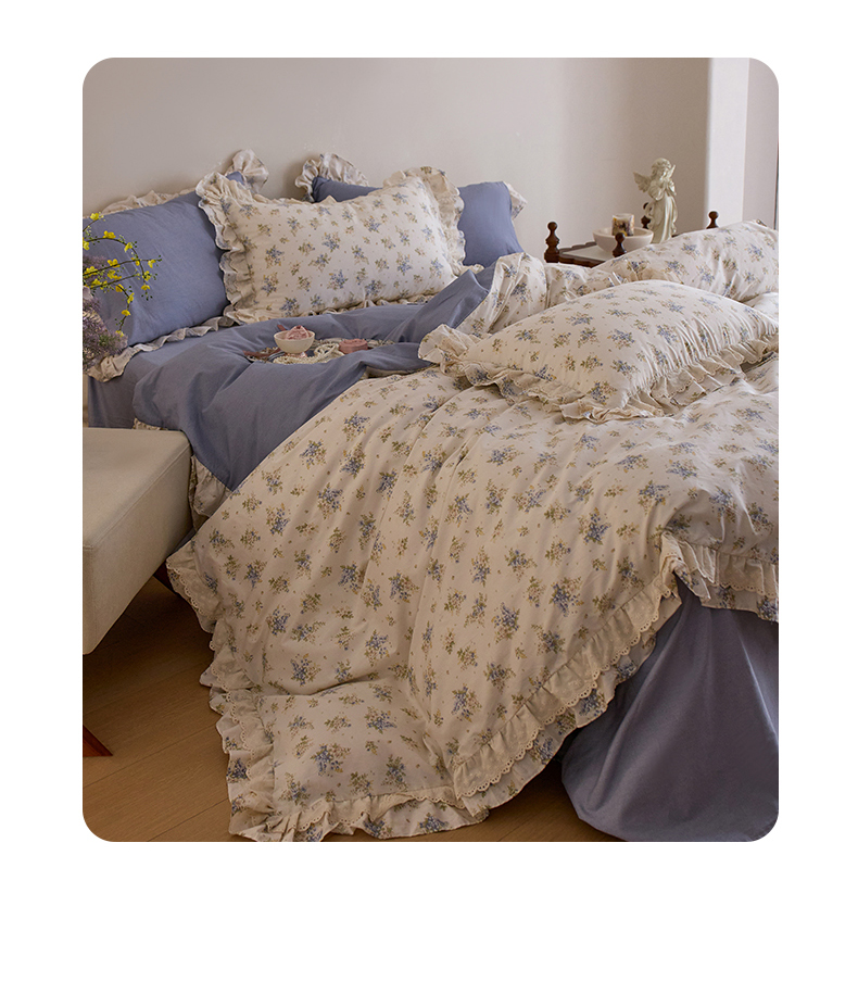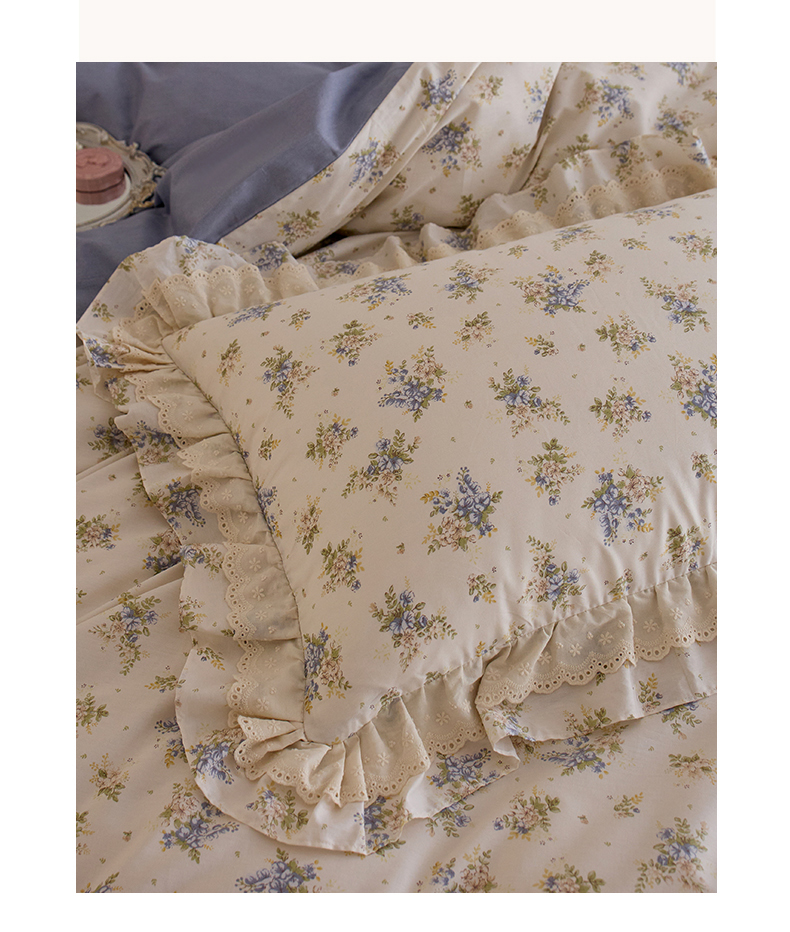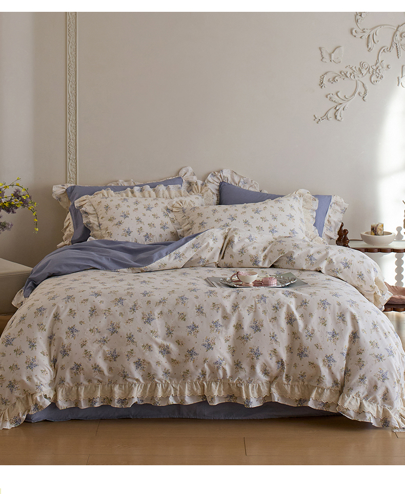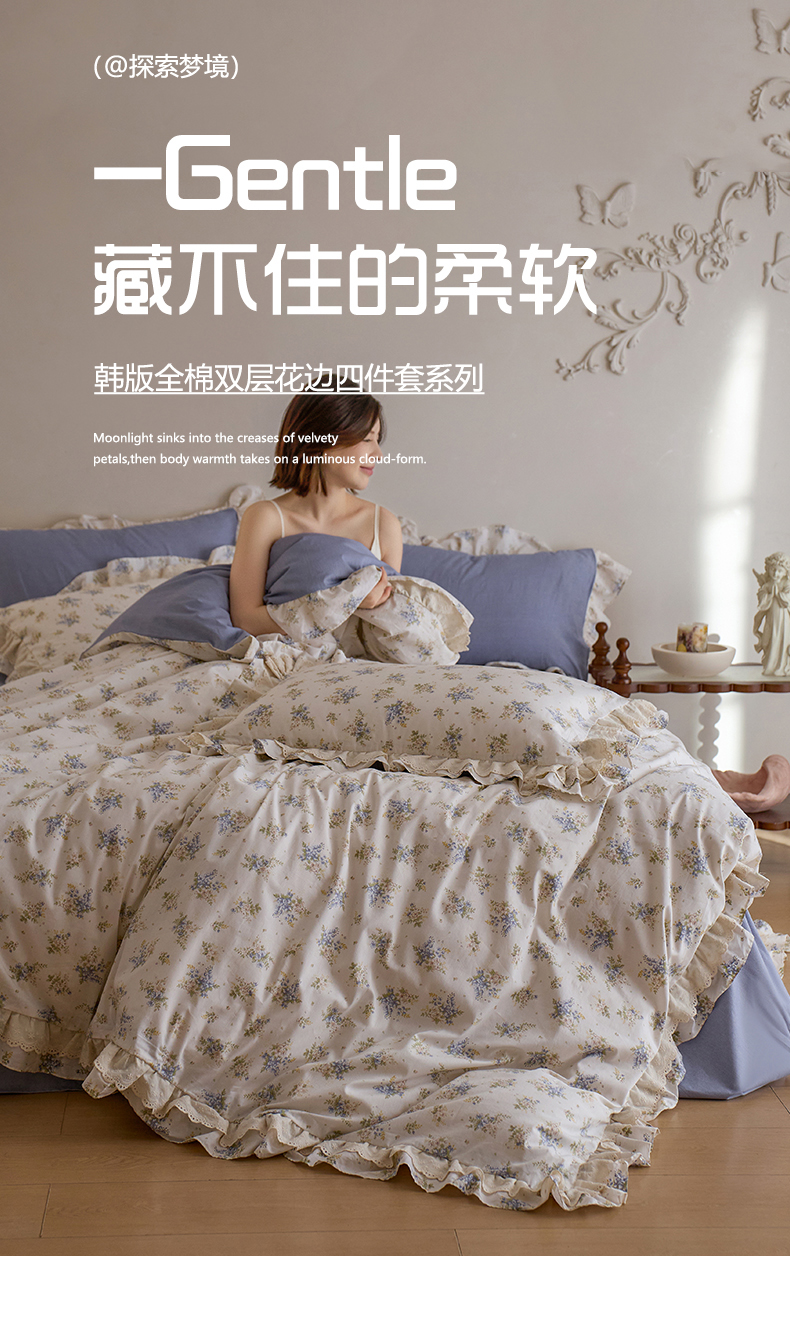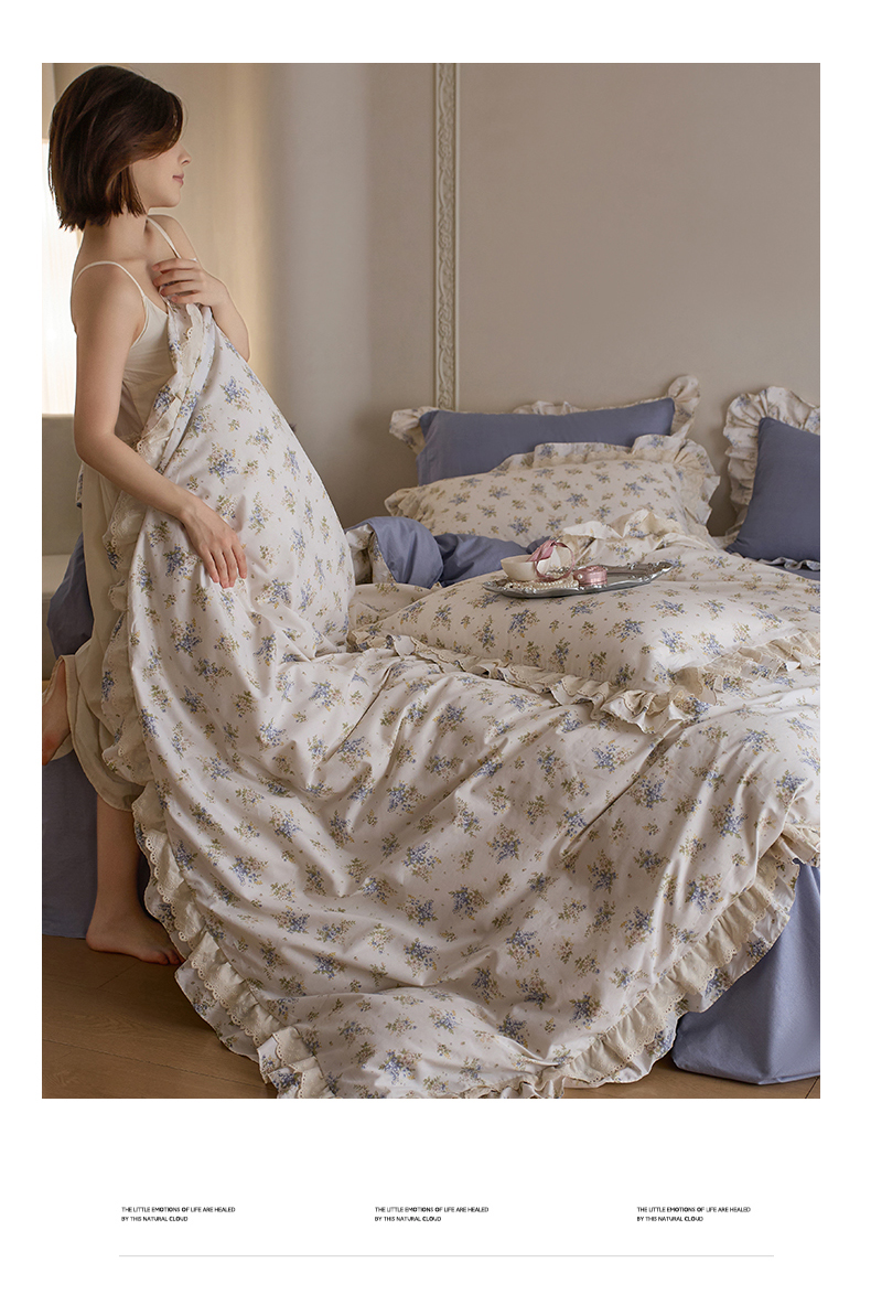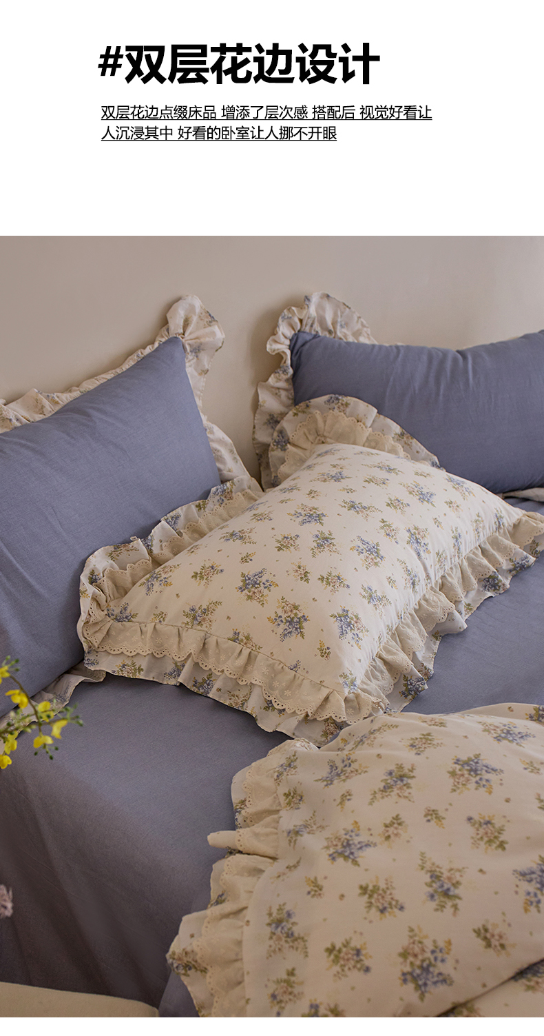 清雅福 2025春夏新品全棉13372法式双层花边系列四件套 兔兔花园