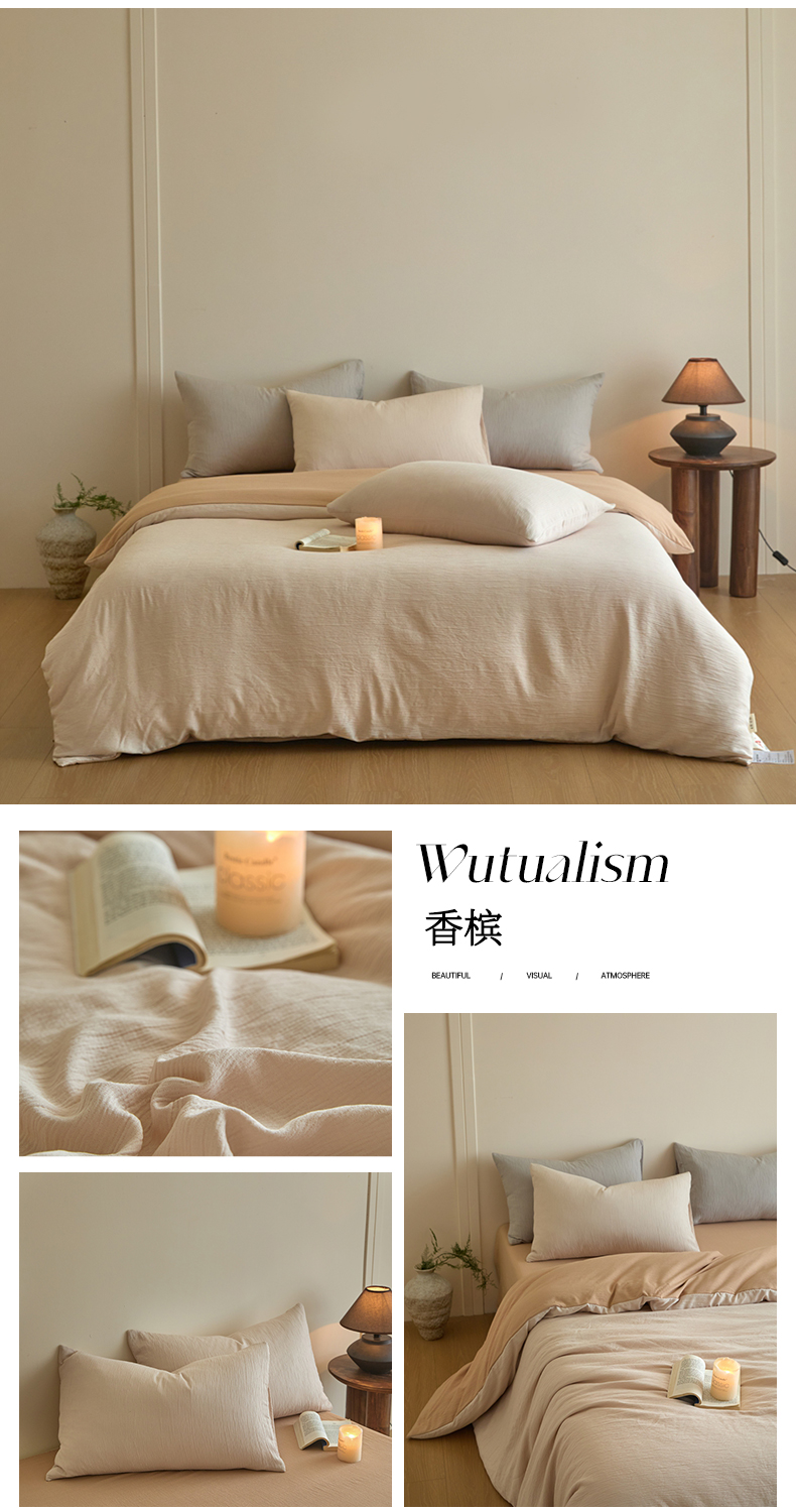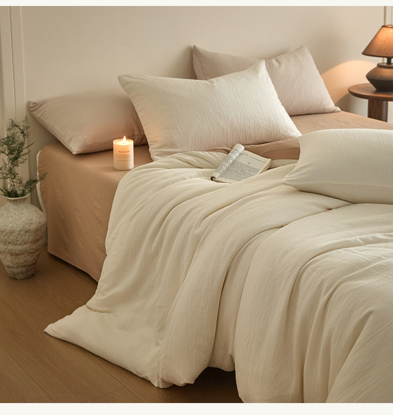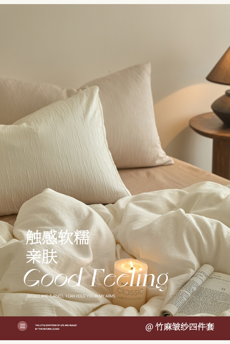 (总)麦空家居 2025新款无印风竹麻皱纱简约纯色四件套