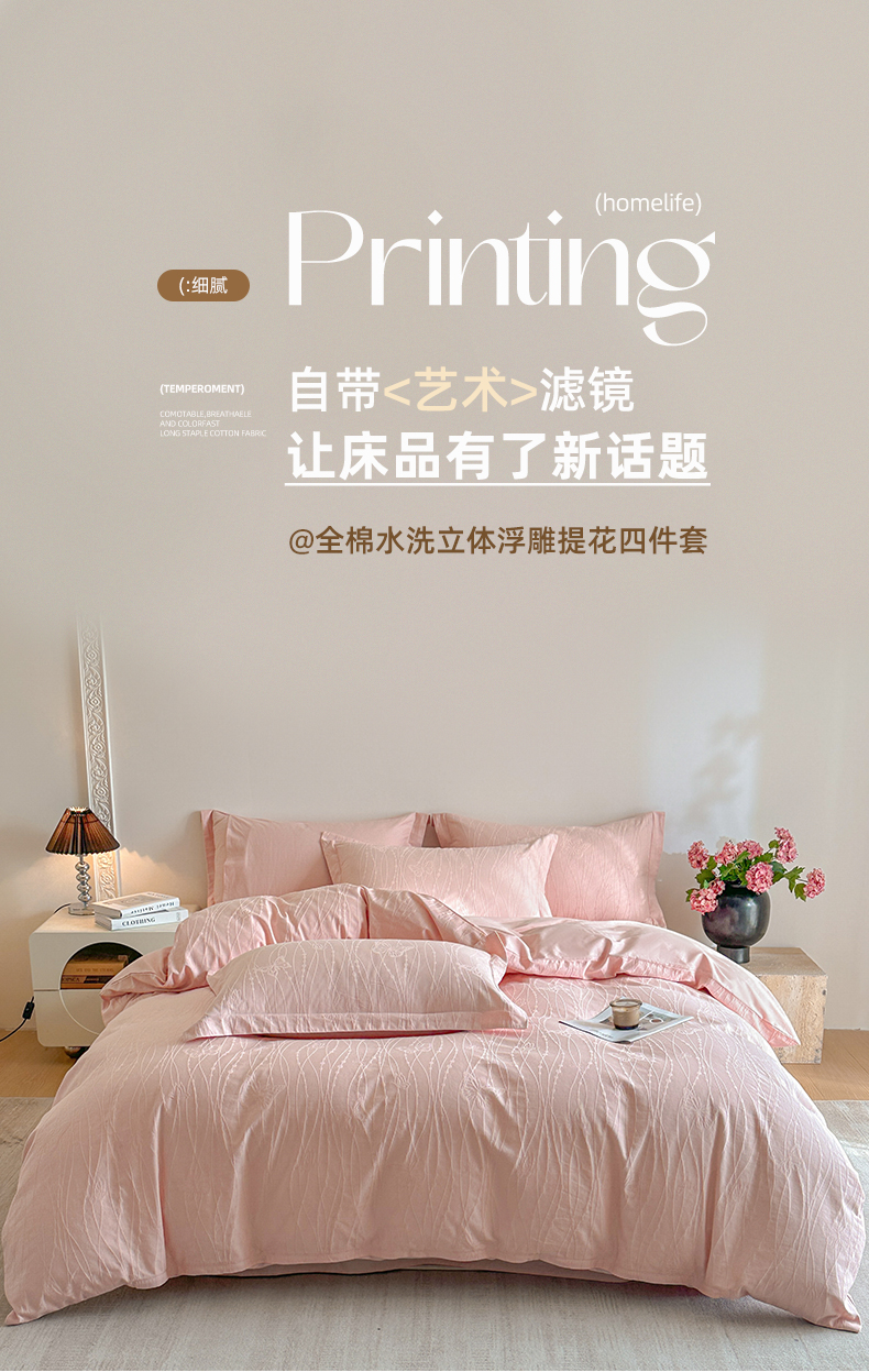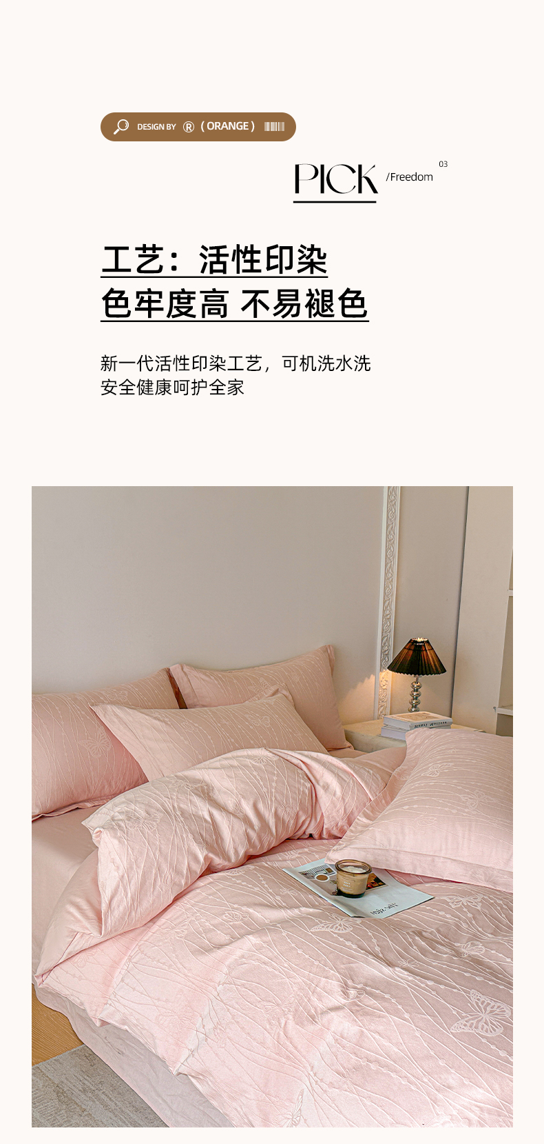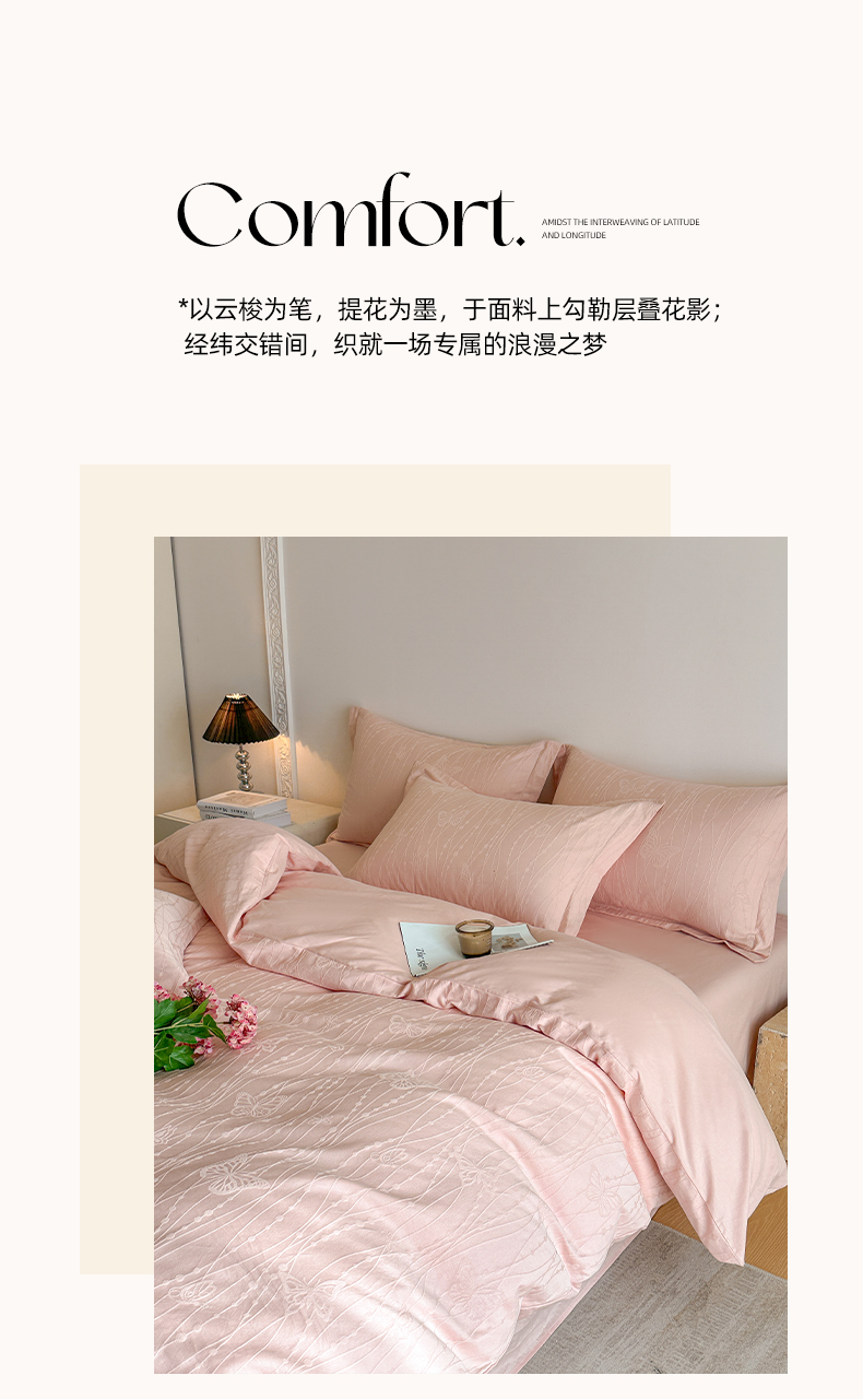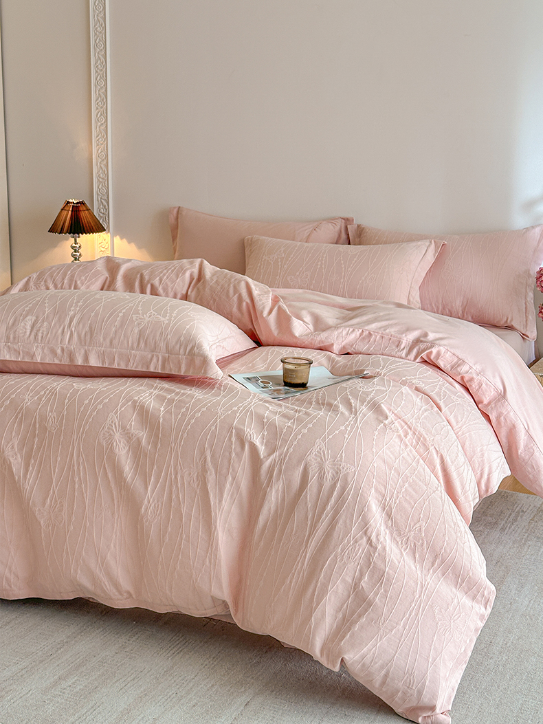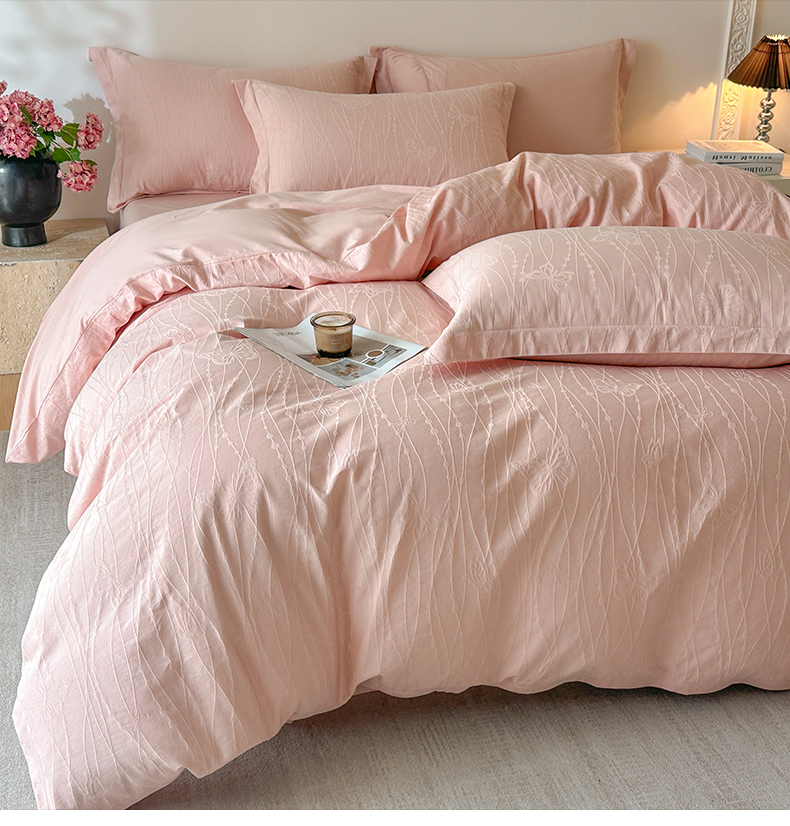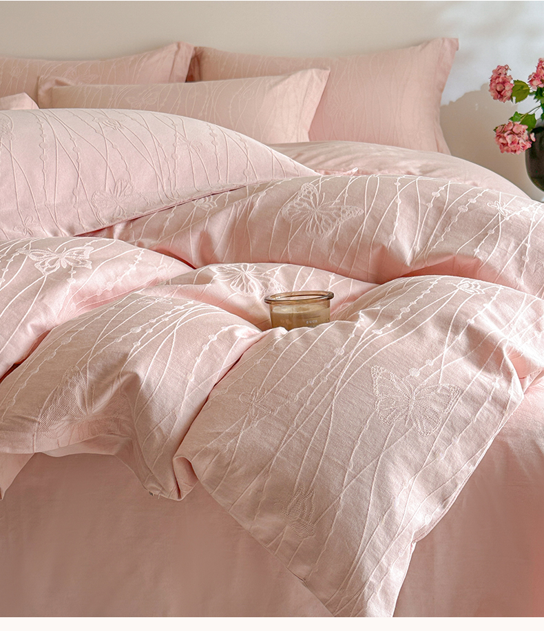 商品名称:格里芬家纺 2026新款全棉水洗立体浮雕提花纯棉四件套 蝶梦-唯美粉