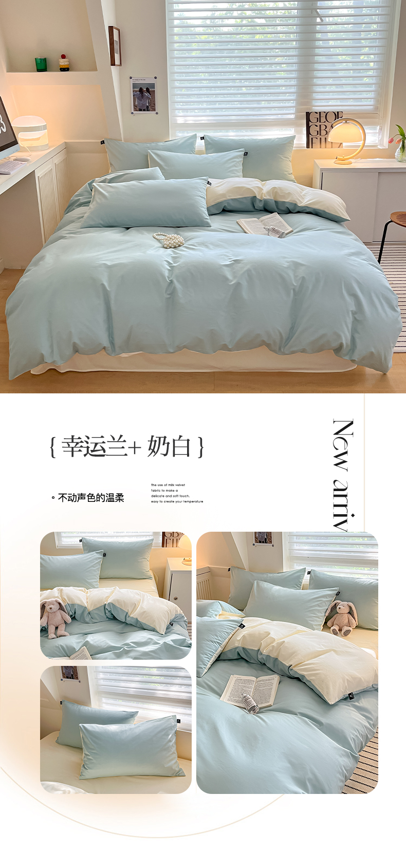 当前位置: 91家纺网 > 商品网购 > 床品套件 > 四件套 > 全棉普通四件套 > 涵宸家纺 2026新款全棉纯色四件套-米兰-场景一 米兰-奶白+月光绿