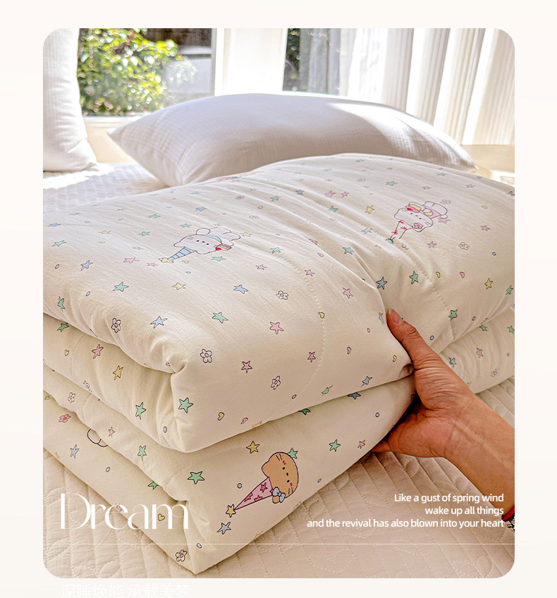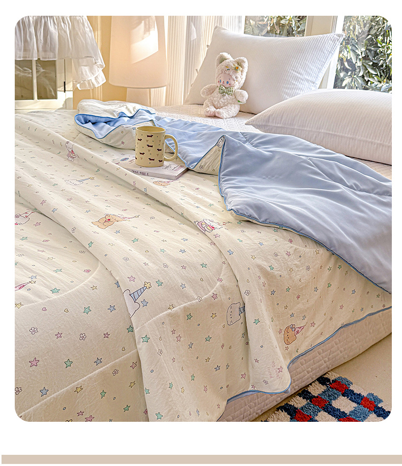 商品名称:梦恬佳 2026新款水洗皱皱纱卡通印花夏凉被 星星奶猫