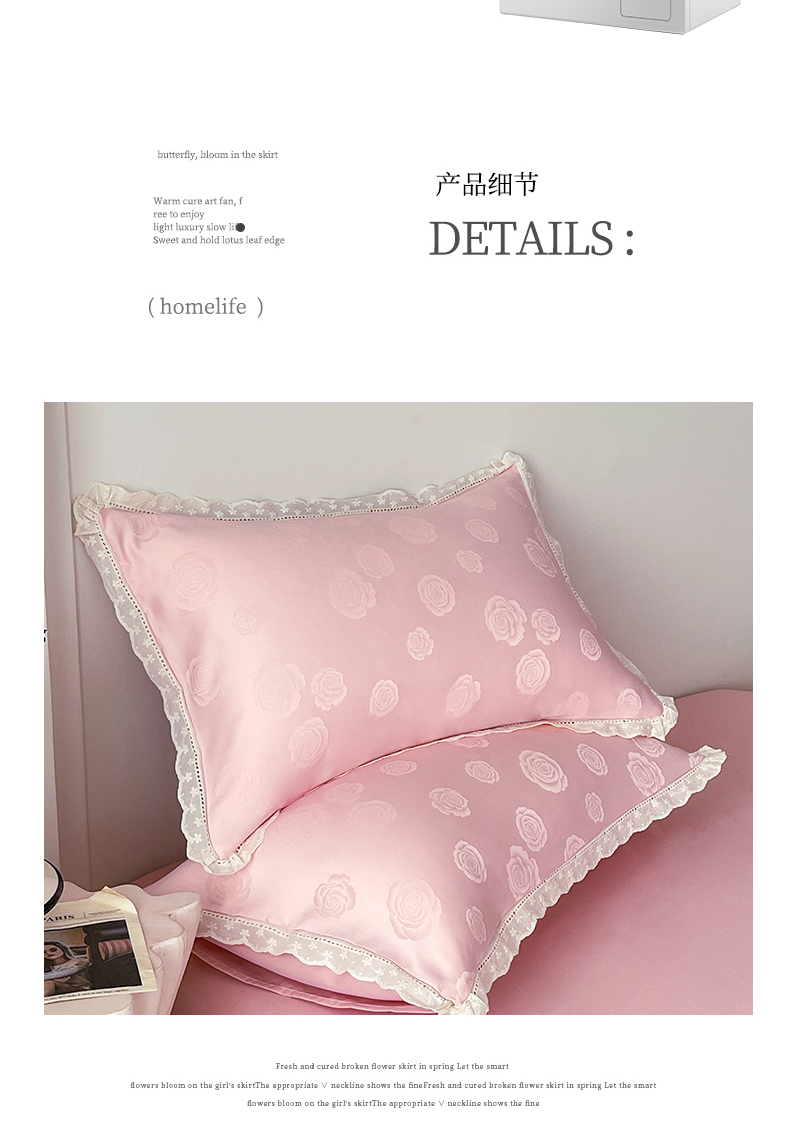 商品名称:大麦乐田 2026春夏新款贡缎提花花边双拼四件套 蝴蝶 香粉玉
