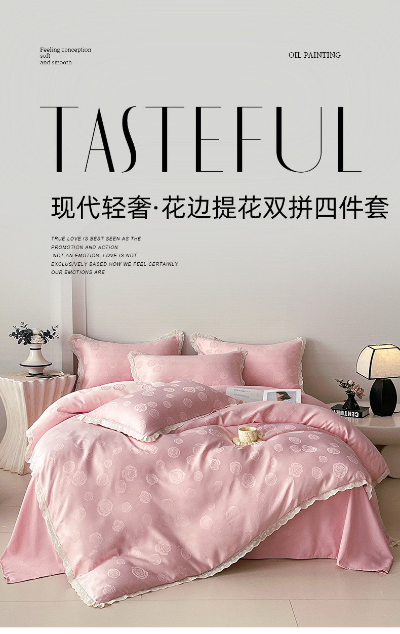 (总)大麦乐田 2026春夏新款贡缎提花花边双拼四件套,玫瑰 香粉玉,玫瑰 奶油绿,玫瑰 初恋紫,玫瑰 奶白米,蝴蝶 香粉玉,蝴蝶 初恋紫,蝴蝶 抹茶绿,恬梦 香粉玉 ,恬梦 山水兰,恬梦 奶油绿,恬梦 初恋紫