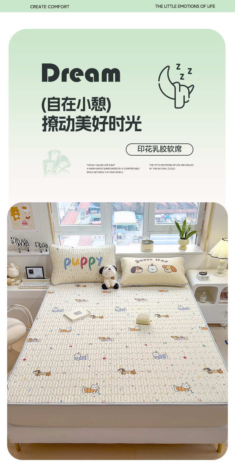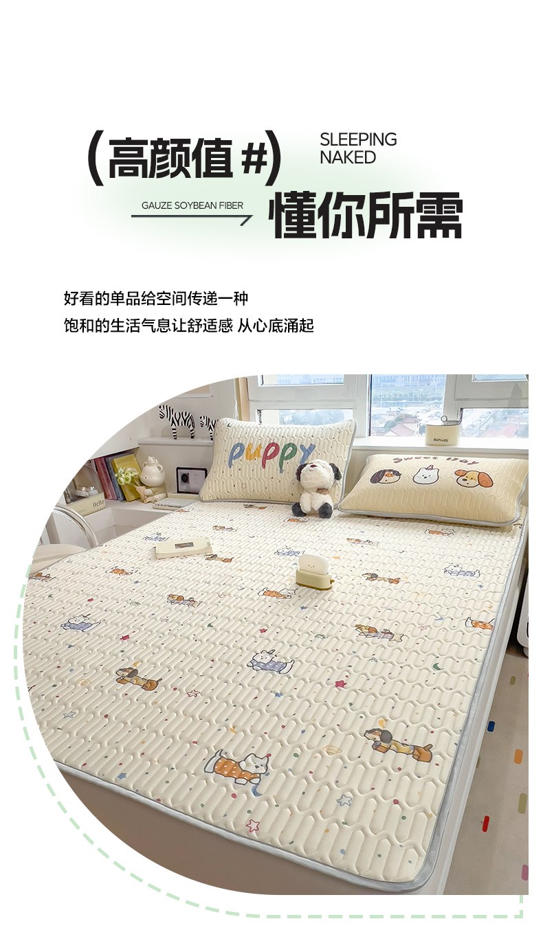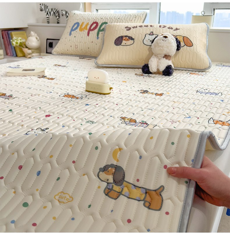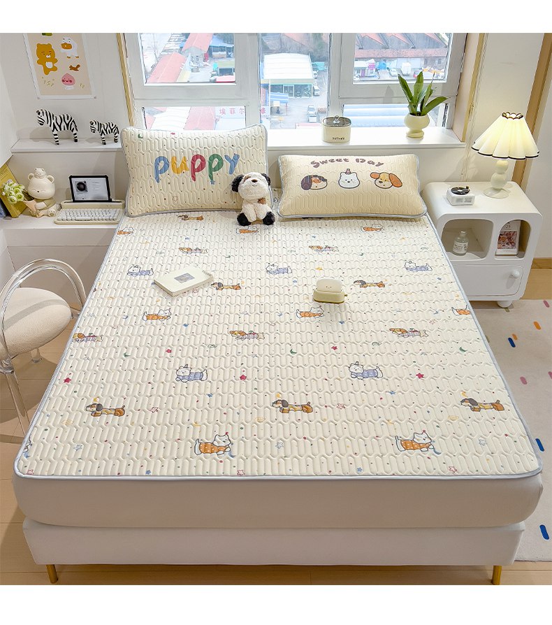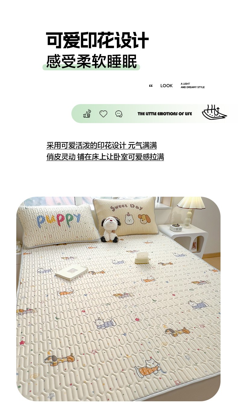 商品名称:摩妮卡 2026新款数码大版小清新乳胶凉席床席款三件套-场景二 萌犬趣乐园