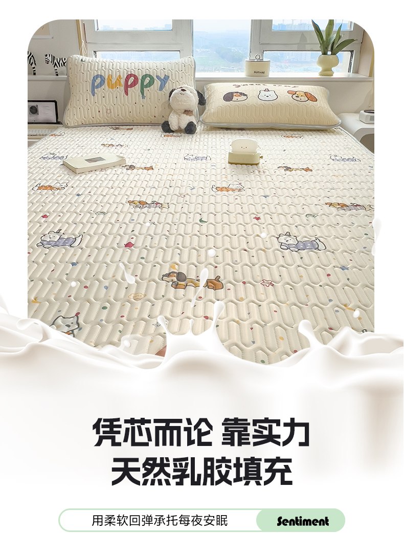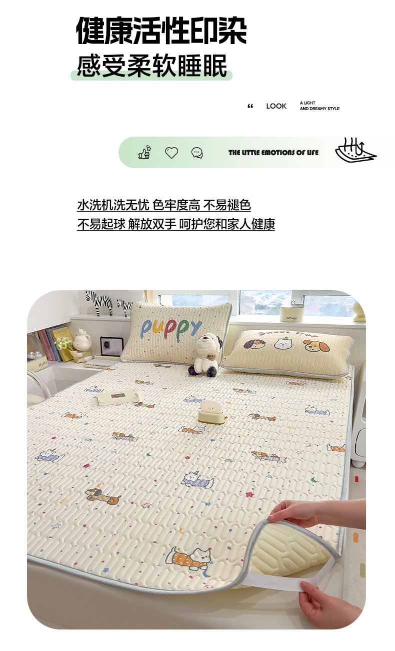 摩妮卡 2026新款数码大版小清新乳胶凉席床席款三件套-场景二 萌犬趣乐园