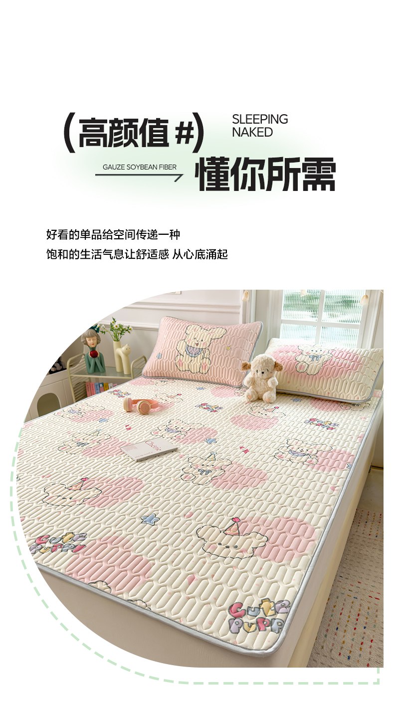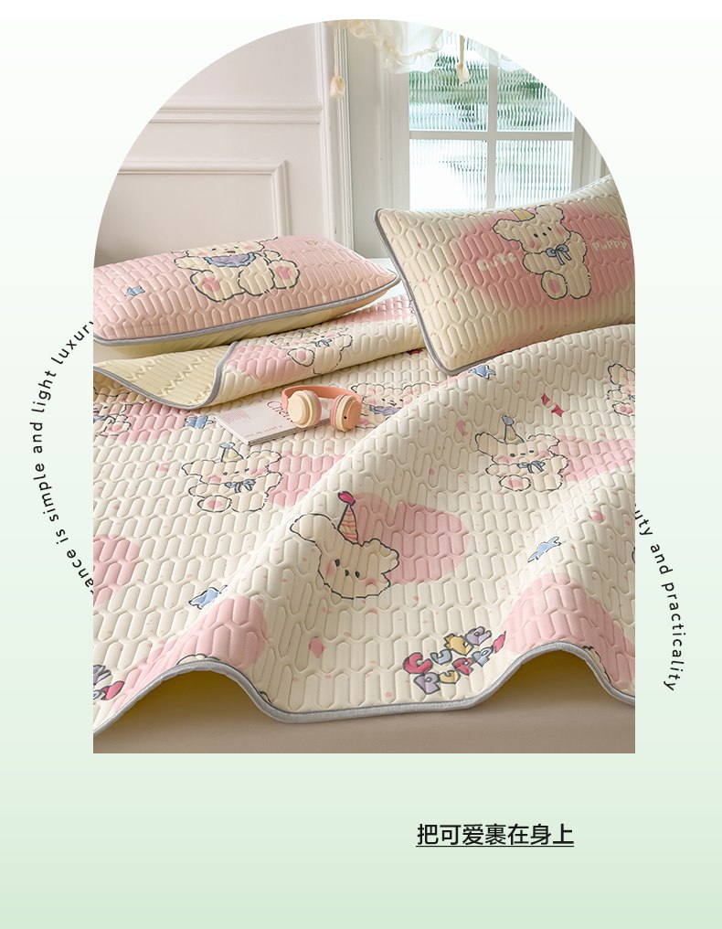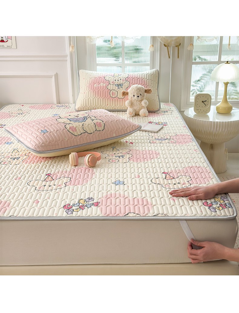 商品名称:摩妮卡 2026新款数码大版小清新乳胶凉席床席款三件套-场景二 甜心小熊