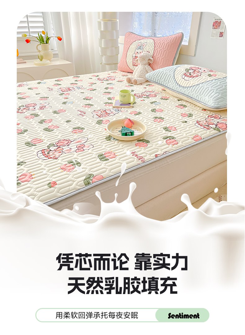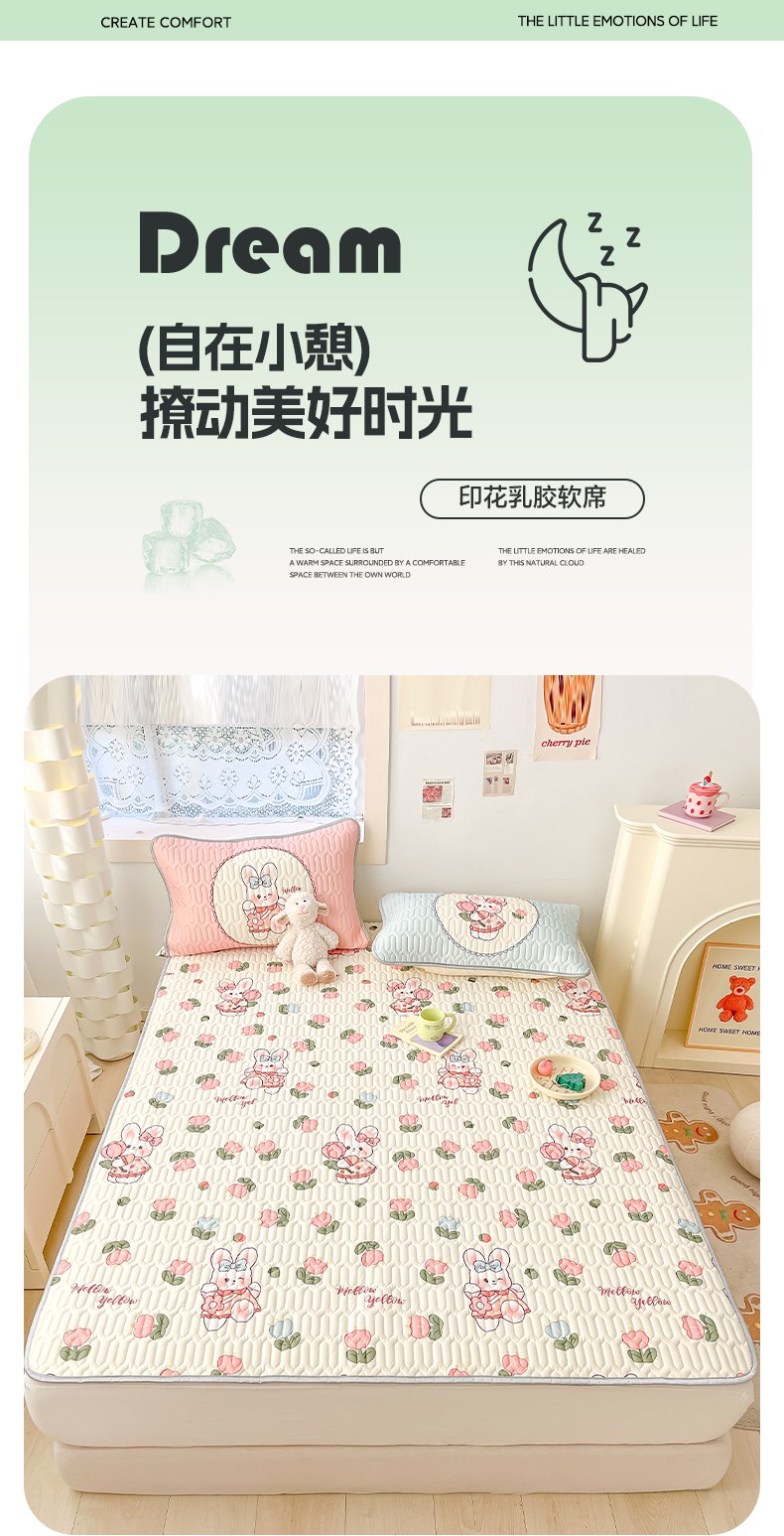 摩妮卡 2026新款数码大版小清新乳胶凉席床席款三件套-场景二 邻家小兔