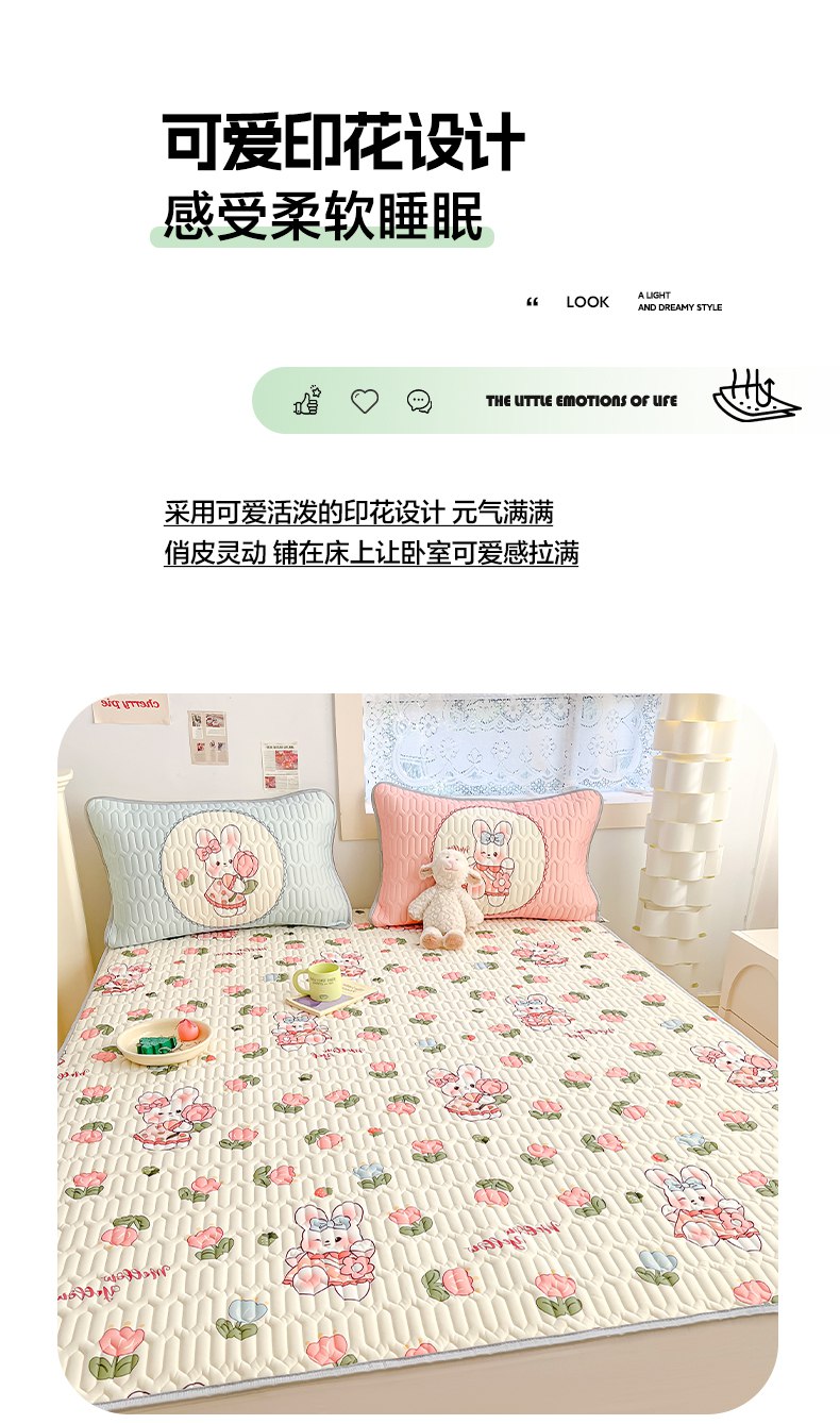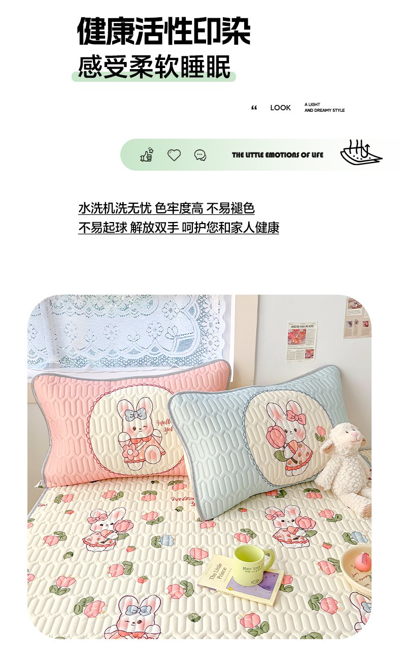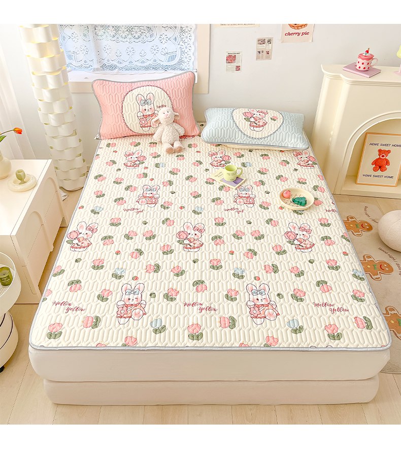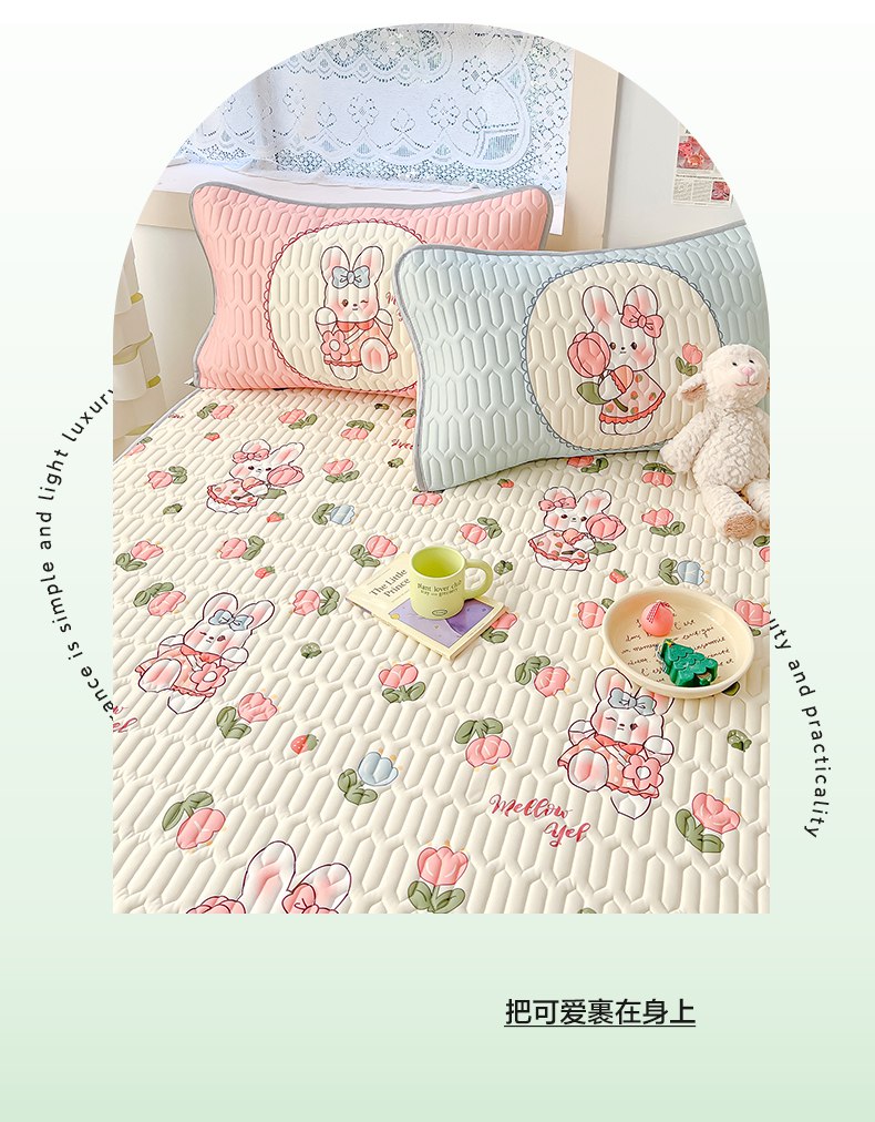 商品名称:摩妮卡 2026新款数码大版小清新乳胶凉席床席款三件套-场景二 邻家小兔