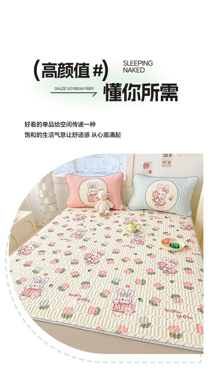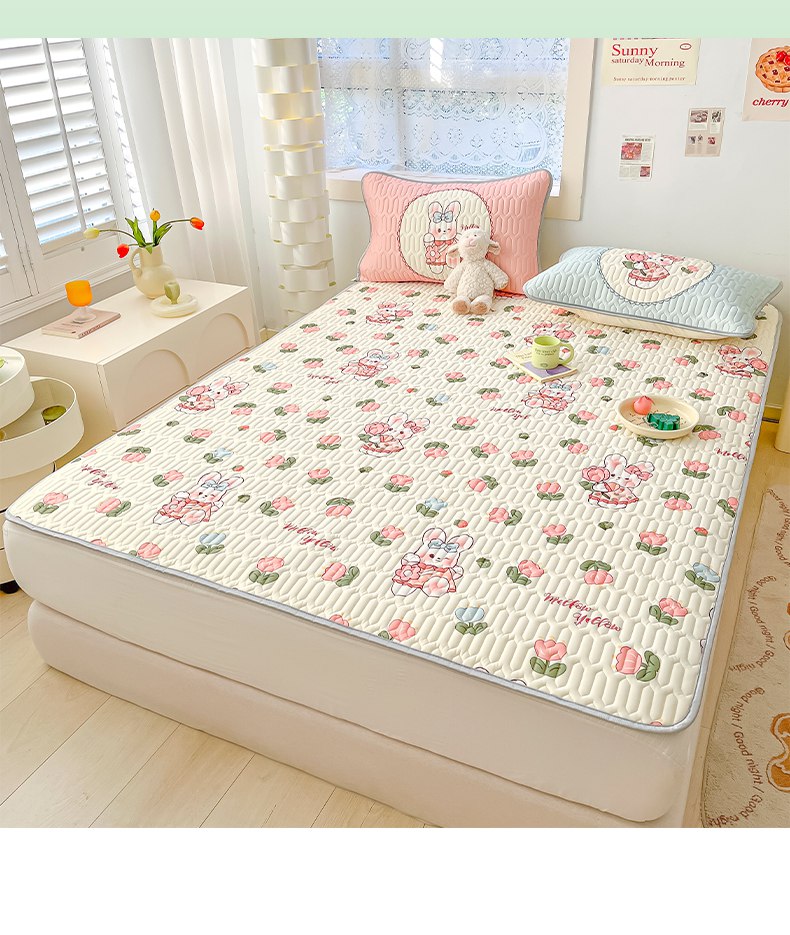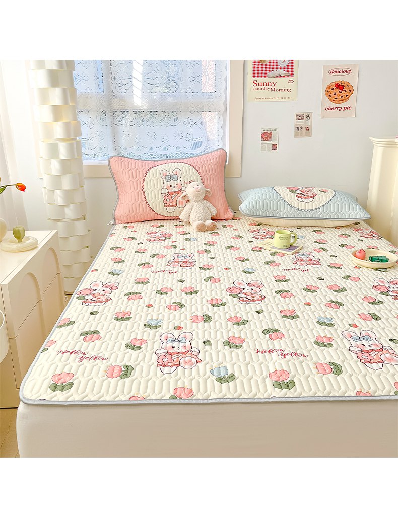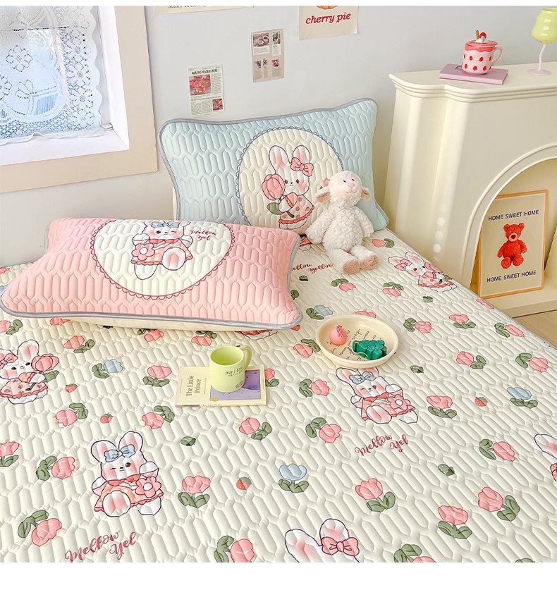 商品名称:摩妮卡 2026新款数码大版小清新乳胶凉席床席款三件套-场景二 邻家小兔