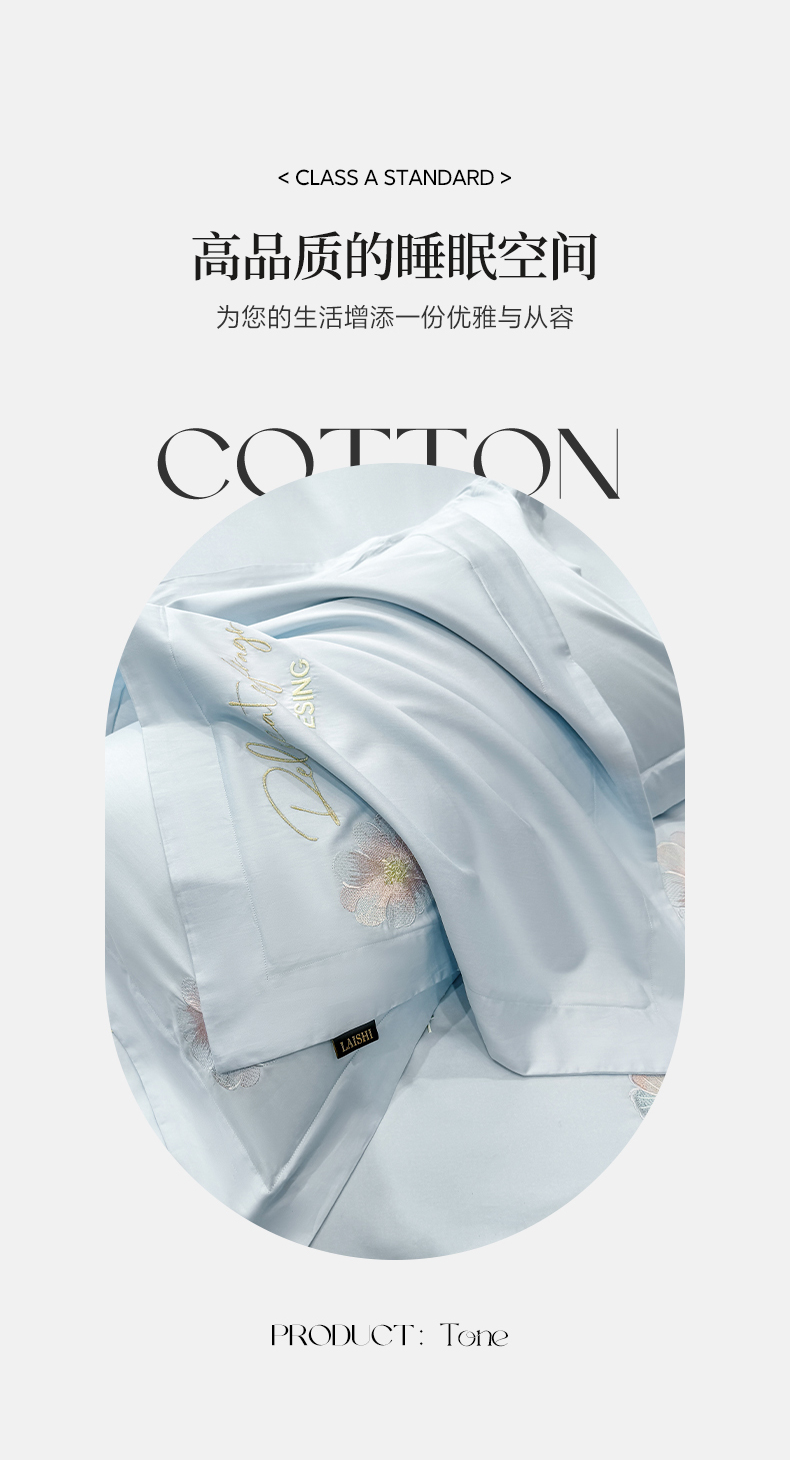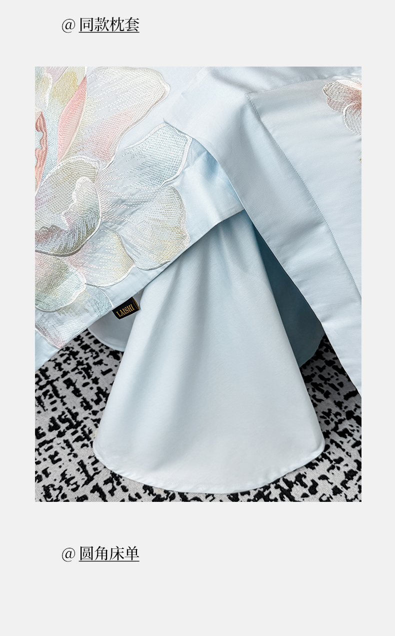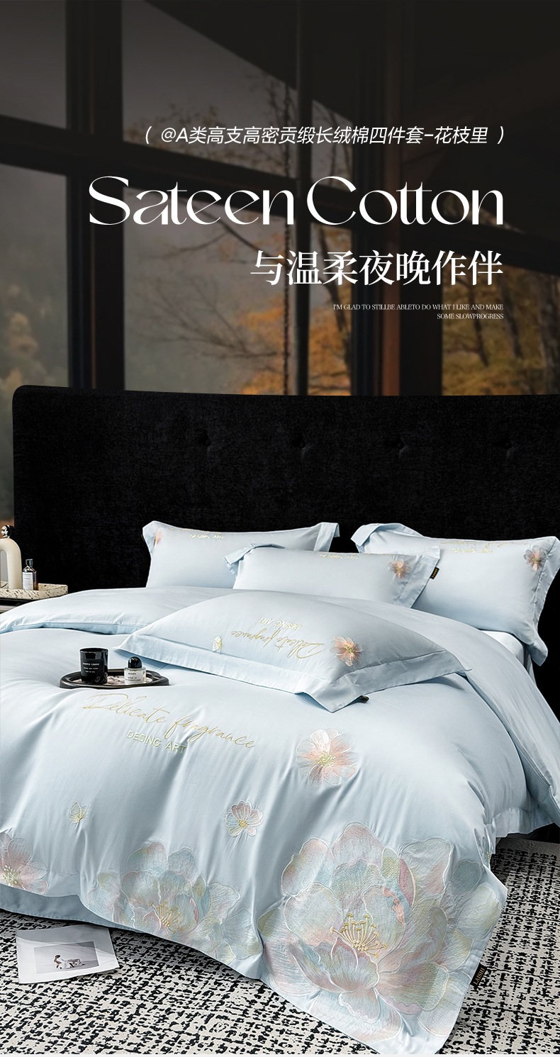 莱势 2026新品A类50支高密贡缎长绒棉四件套-花枝里系列 花枝里-天空蓝