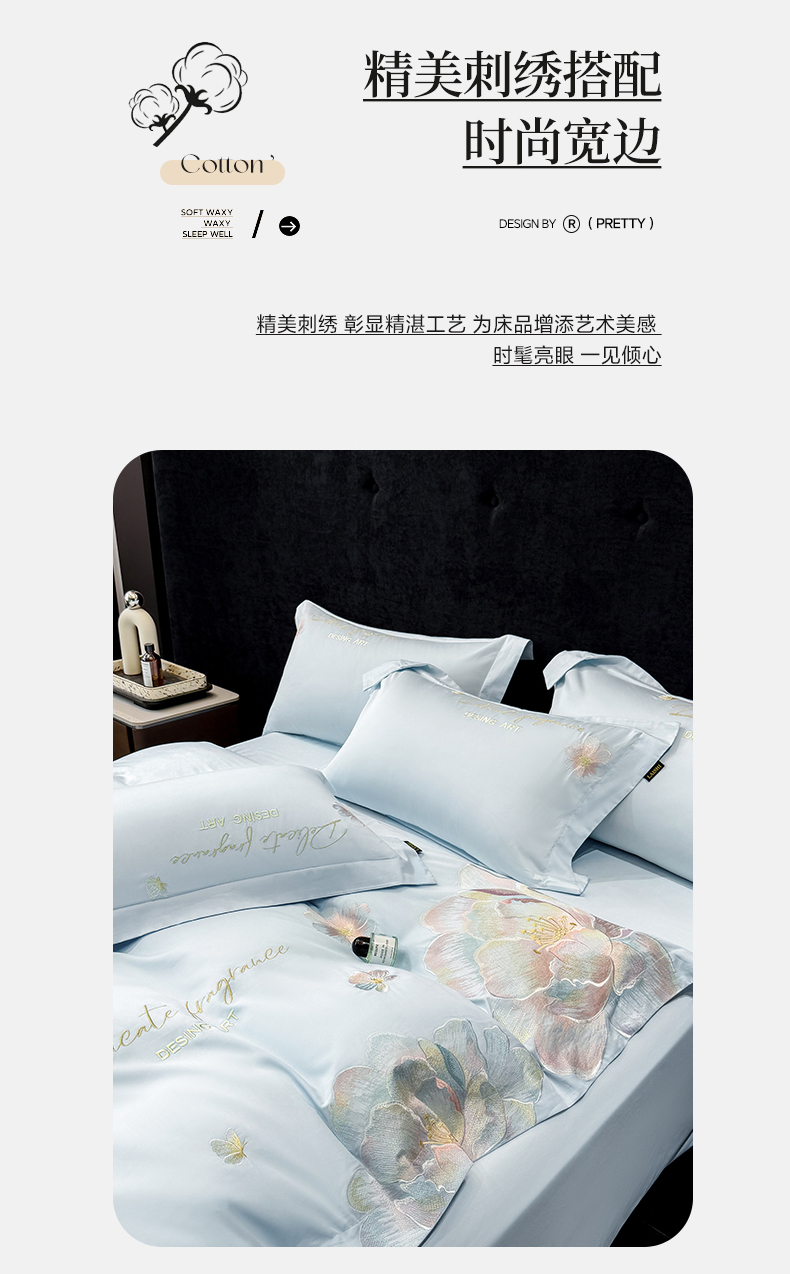 (总)莱势 2026新款100支全棉纯棉50x50s埃及贡缎长绒棉刺绣绣花四件套高端礼盒-花开半夏系列,花开半夏-天空蓝,花开半夏-绿野仙踪,花开半夏-轻奢粉