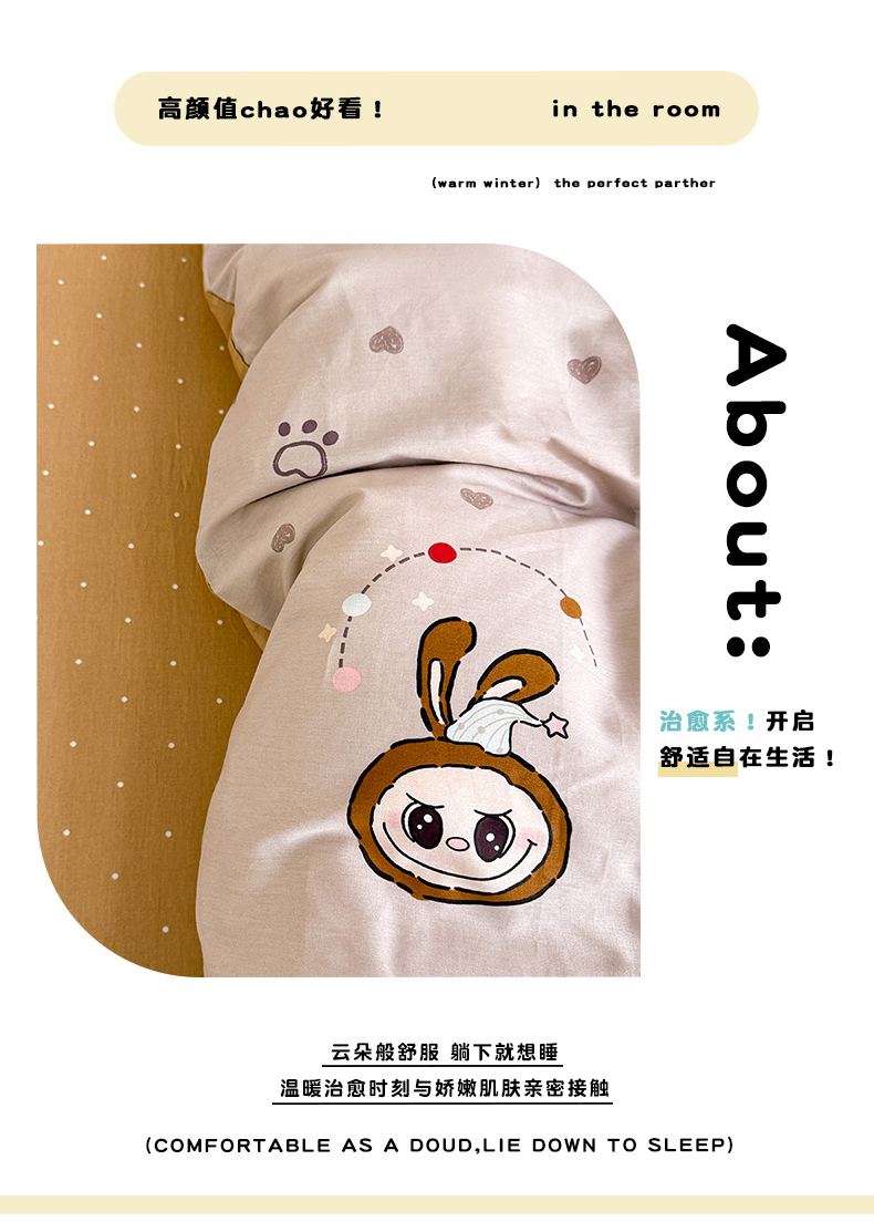 当前位置: 91家纺网 > 商品网购 > 床品套件 > 四件套 > 全棉普通四件套 > 董成龙家纺 2026春夏新款100%全棉纯棉印花四件套印花卡通系列三件套(喷气工艺) 秋日确幸-豆沙