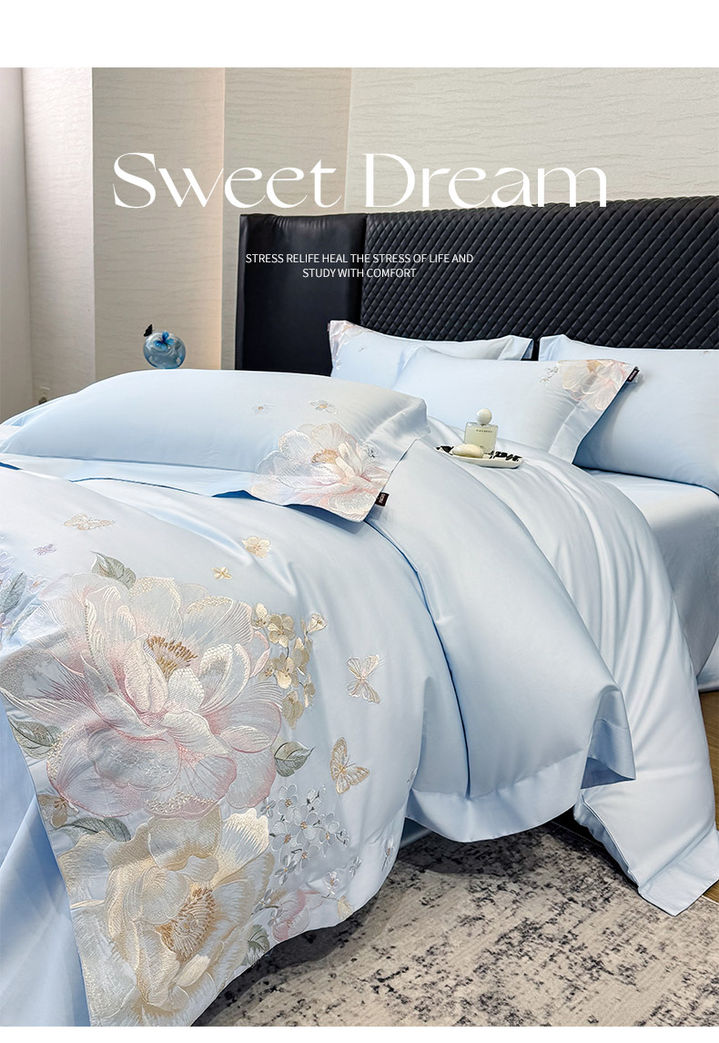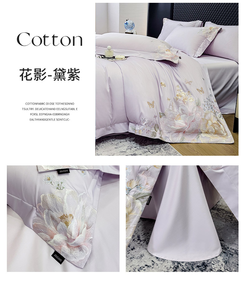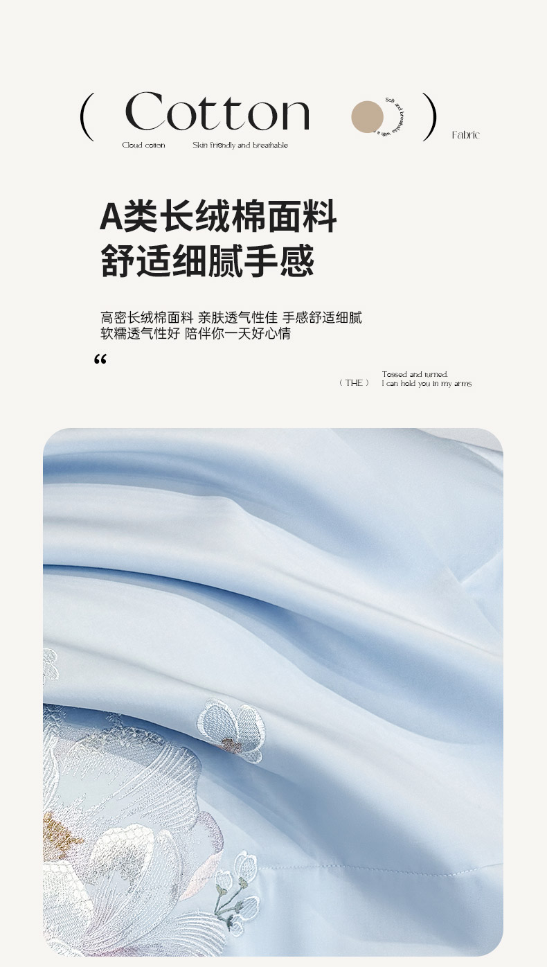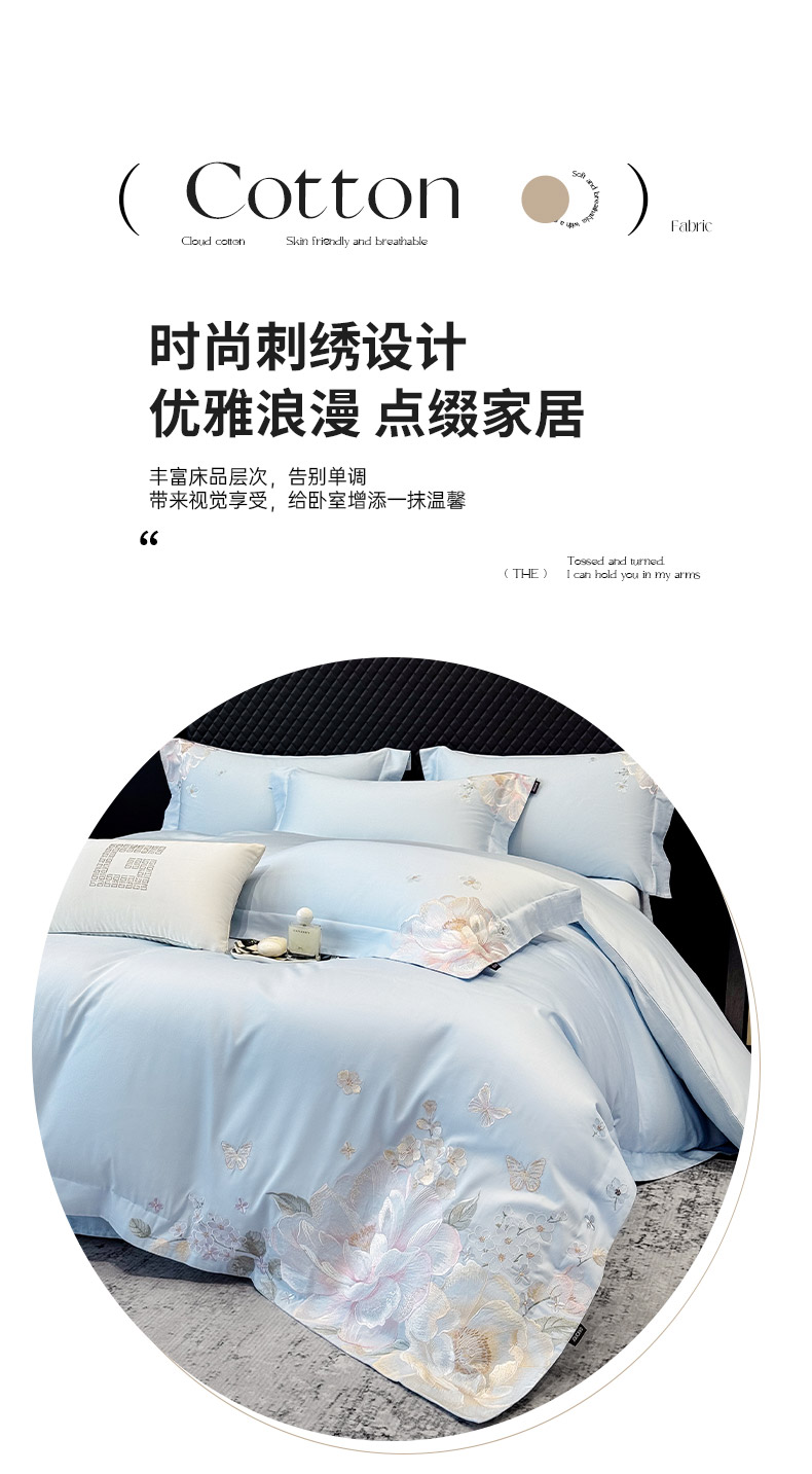 当前位置: 91家纺网 > 商品网购 > 床品套件 > 四件套 > 长绒棉四件套 > 2026新品高档轻奢风100支贡缎长绒棉纯棉四件套全棉重工刺绣被套床单床笠新品四季款床上用品 花影-慕蓝