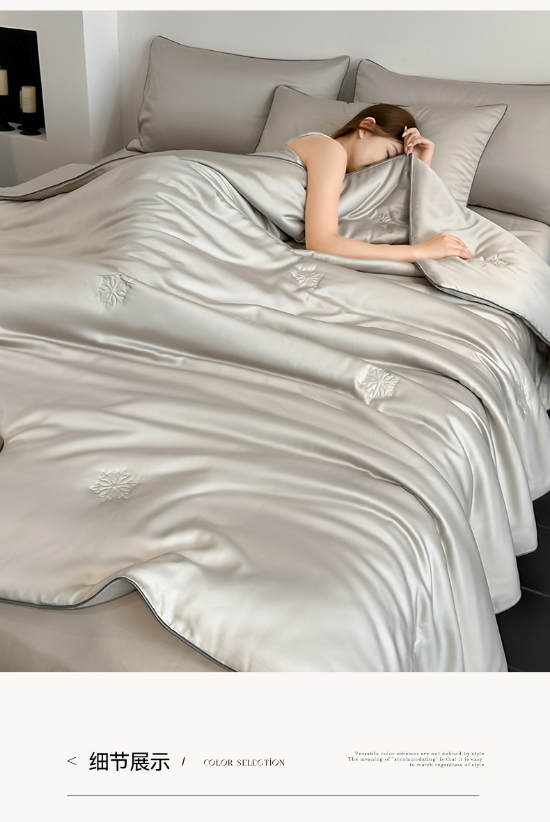 • 91家纺网 家纺一手货源 找家纺 无界 2026新款水洗真丝夏被-麻绳雪花绗缝-伊芙琳 伊芙琳 冰川灰