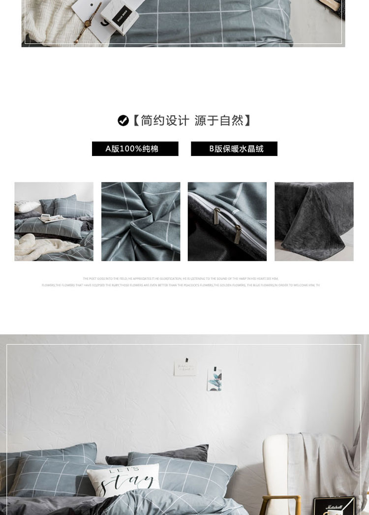 梦家居韩国简约纯棉水晶绒四件套A版全棉B版水晶绒四件套