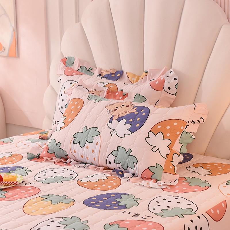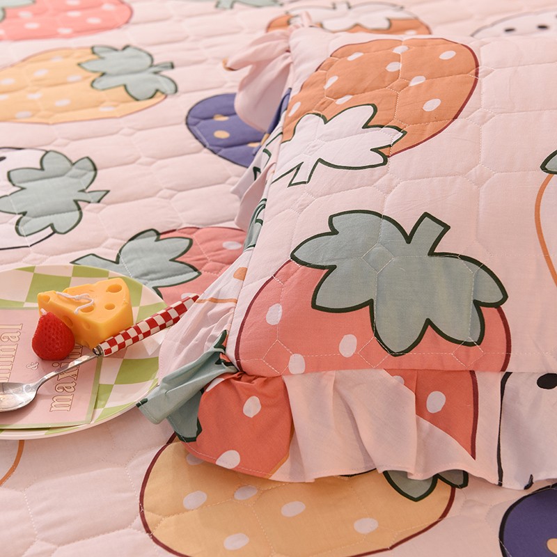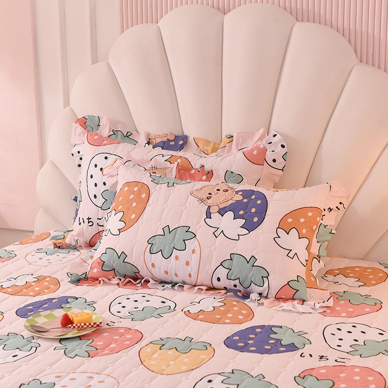甜之梦 2025新款全棉印花夹棉抗菌枕套 草莓乐园