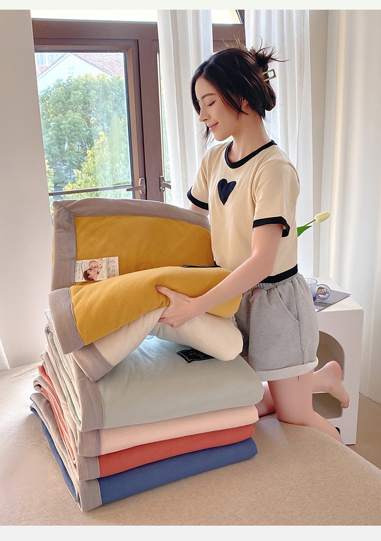 商品名称:兄弟坊 2023新款凉感丝华夫格纯色包边大豆夏被梦游仙境-浅灰