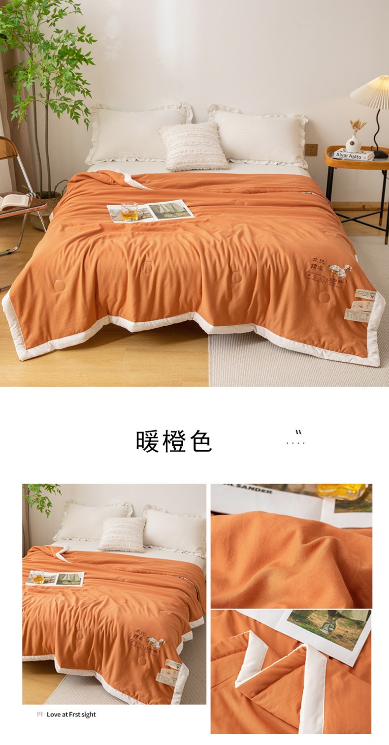 (总)钰博 2024新款水洗棉棉麻大豆被夏被夏凉被空调被,豆绿色,豆沙粉,暖橙色,云朵白,绅士灰