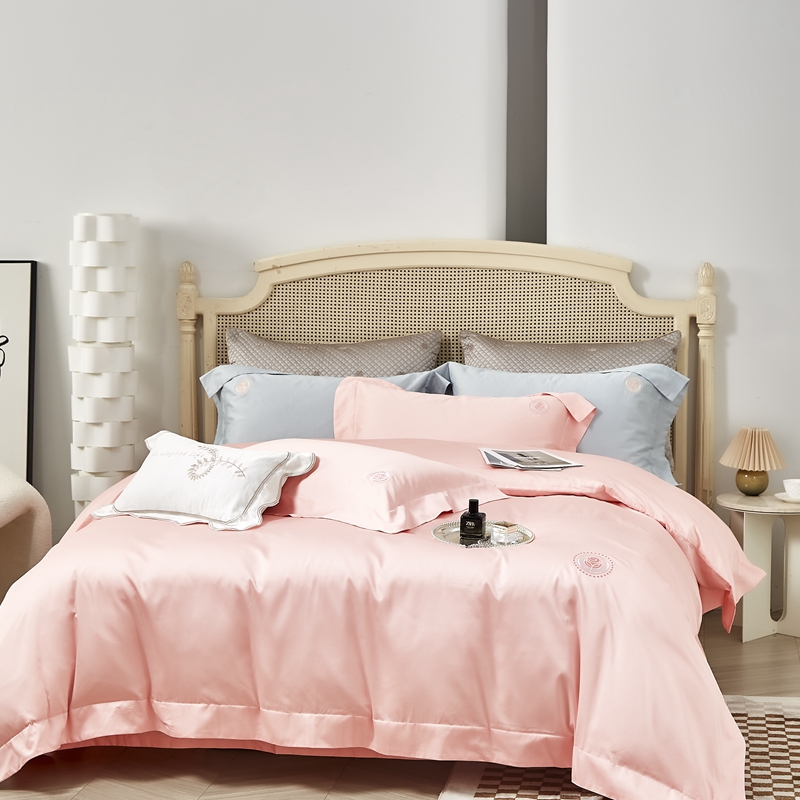 商品名称:榻尚家居 2023新款TS简约系列80长绒棉贡缎四件套 香妃粉