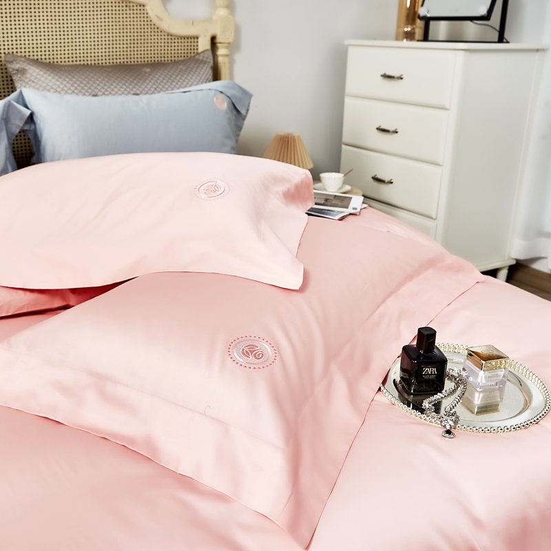 榻尚家居 2023新款TS简约系列80长绒棉贡缎四件套 香妃粉