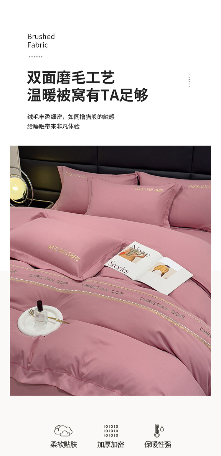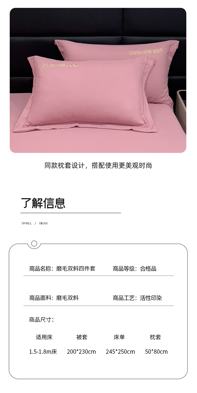 商品名称:靓生活 2023新款磨毛双斜四件套豆沙