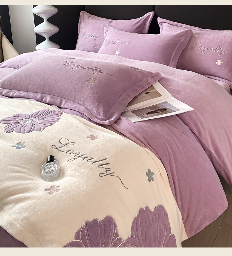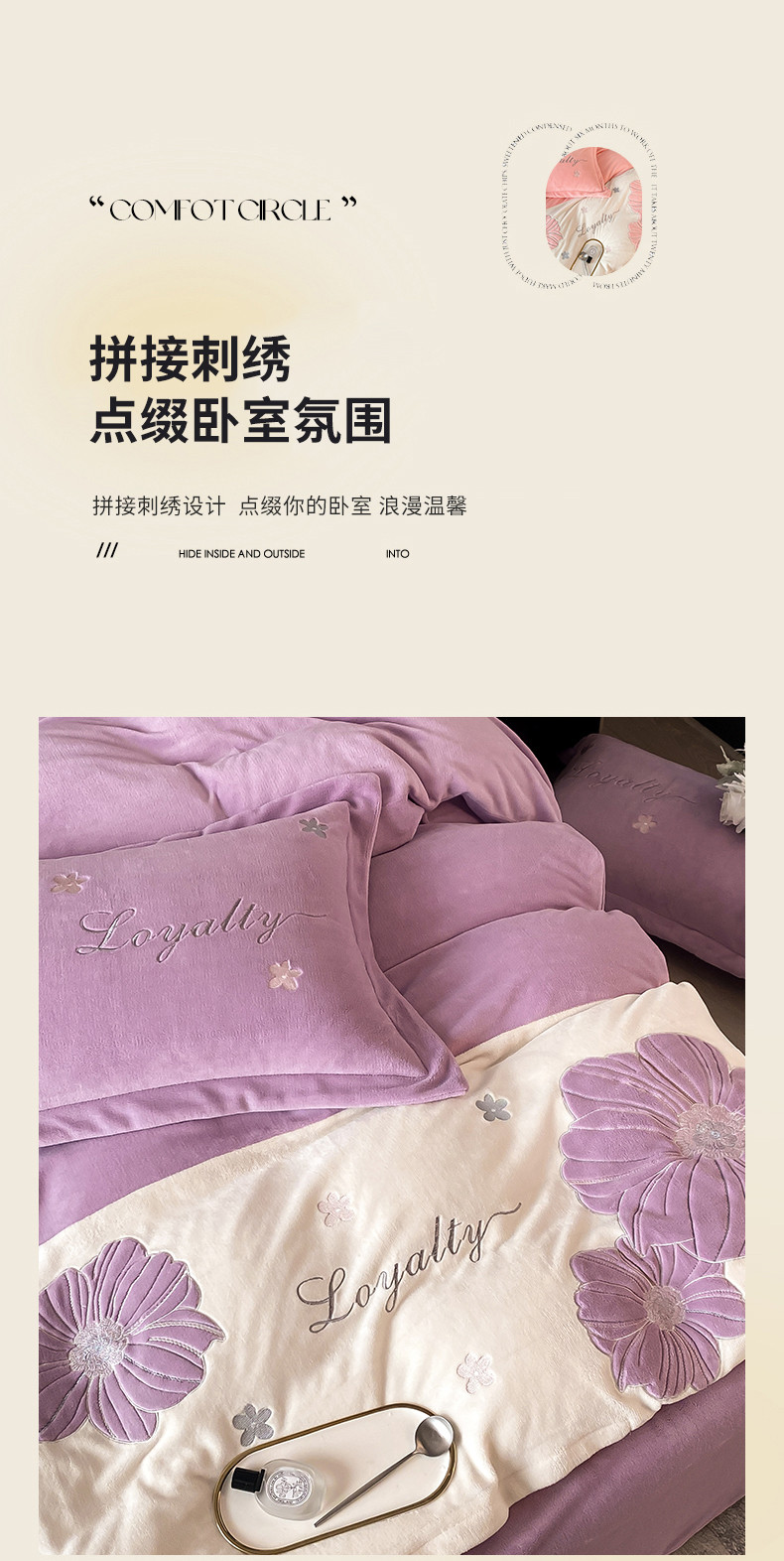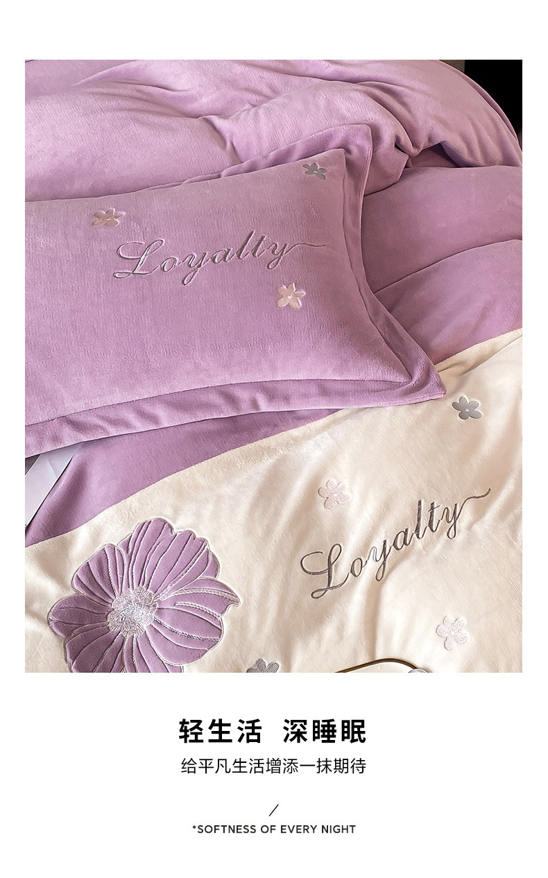 当前位置: 91家纺网 > 商品网购 > 床品套件 > 四件套 > 牛奶绒四件套 > 你好美丽 2025新款200克牛奶绒刺绣花卉3系列四件套 芬芳紫