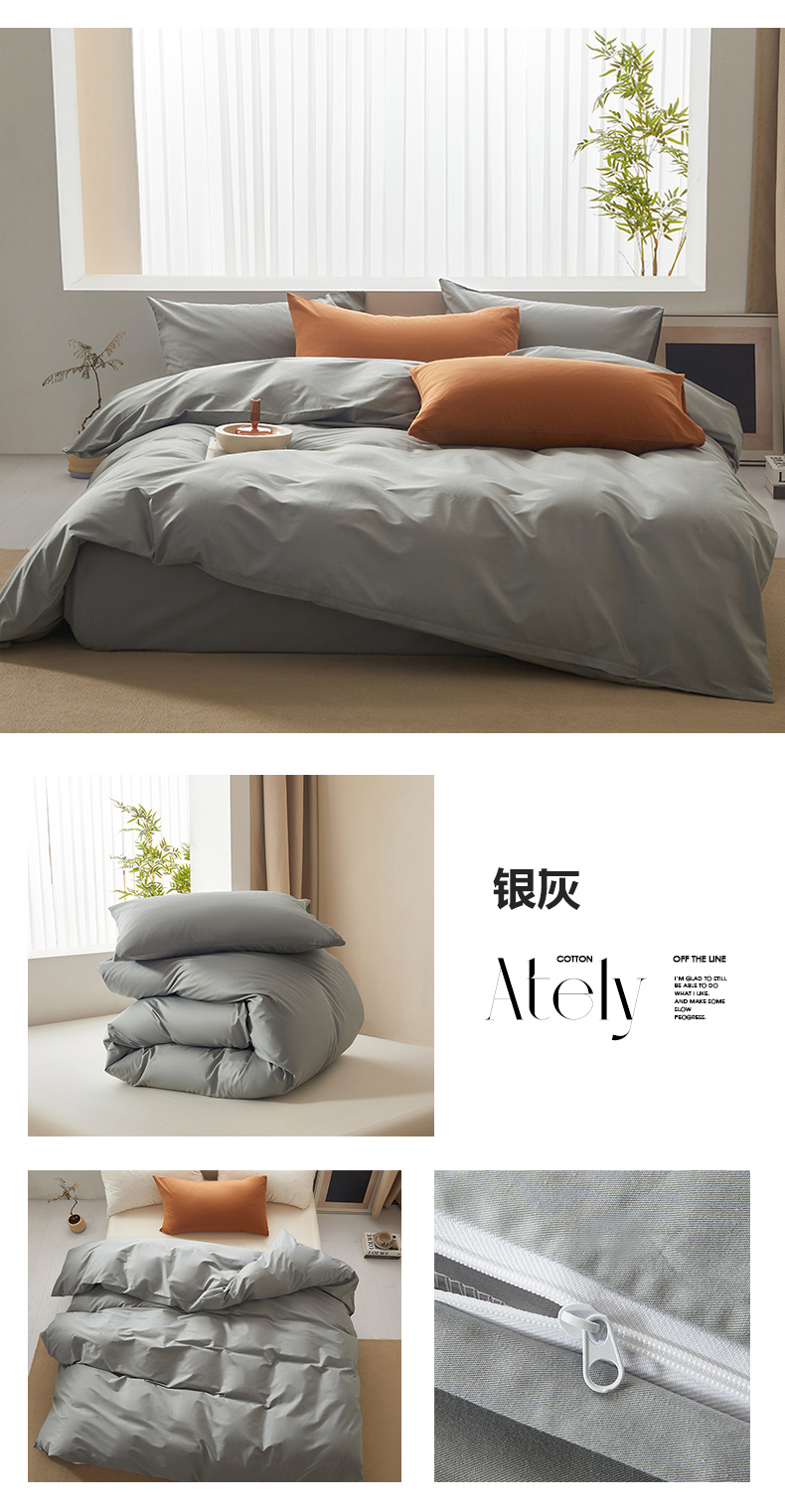 商品名称:寝柔家纺 2024新款40S全棉斜纹13372纯棉纯色被套单件 银灰