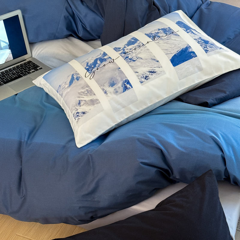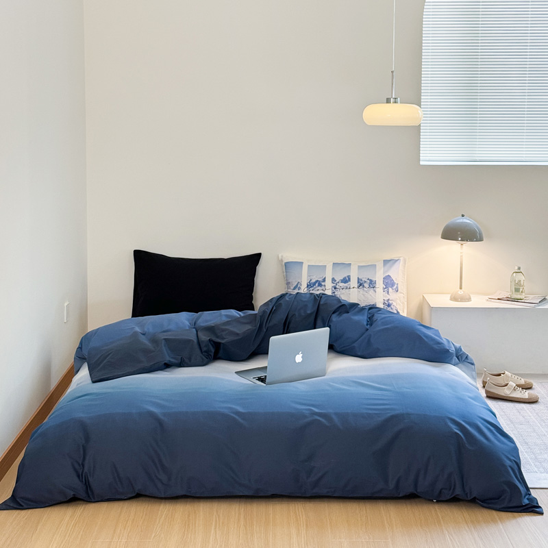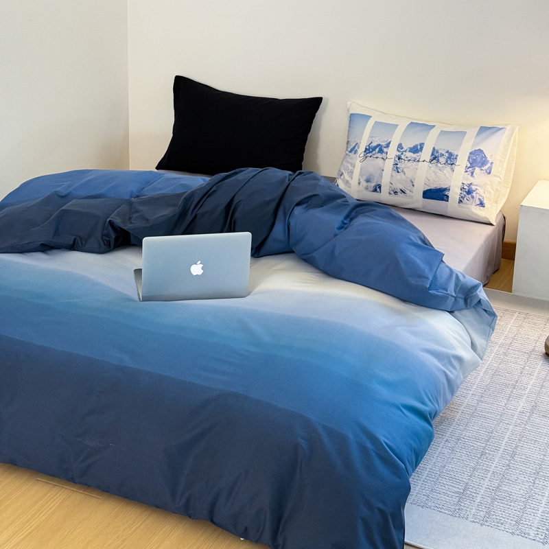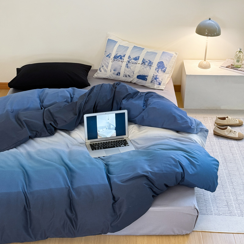 当前位置: 91家纺网 > 商品网购 > 床品套件 > 四件套 > 全棉普通四件套 > 艾沁家纺 2024新款40支全棉渐变色混搭四件套 渐变蓝