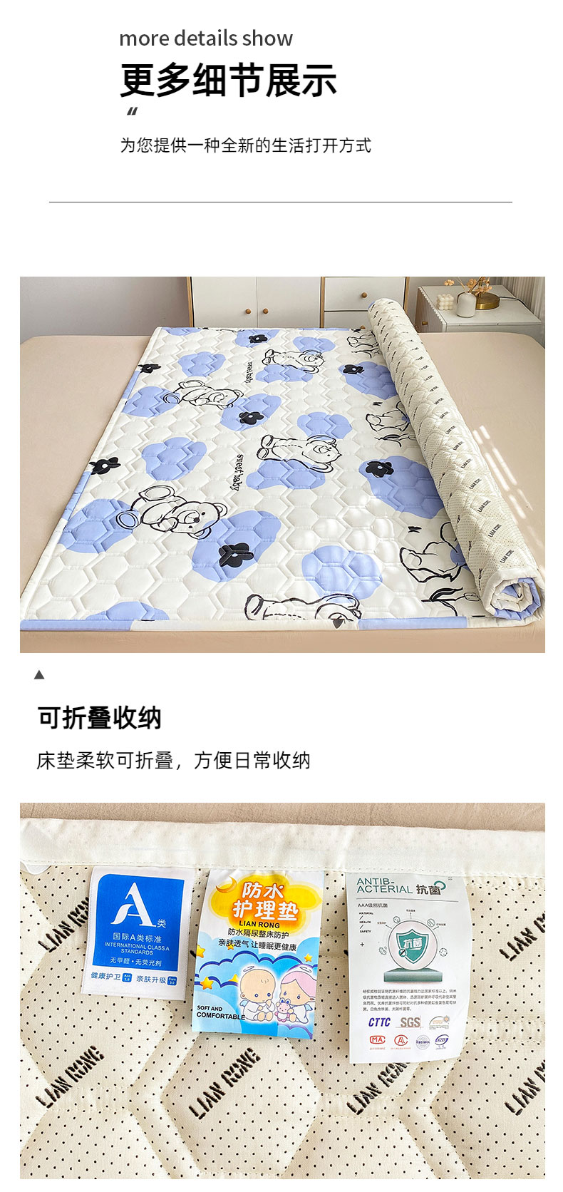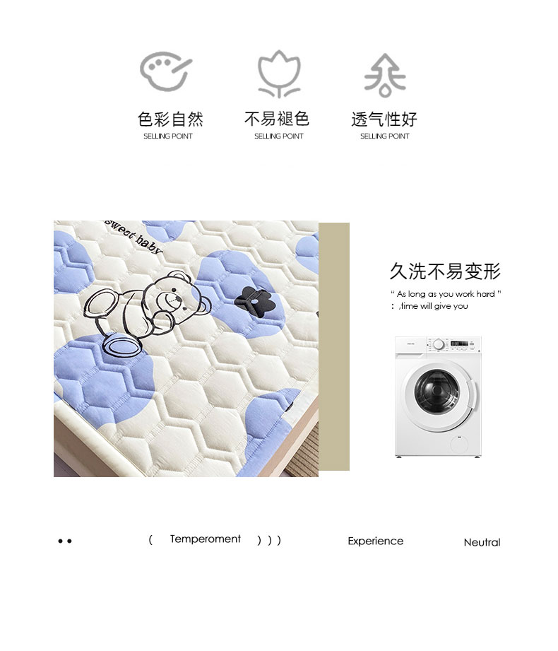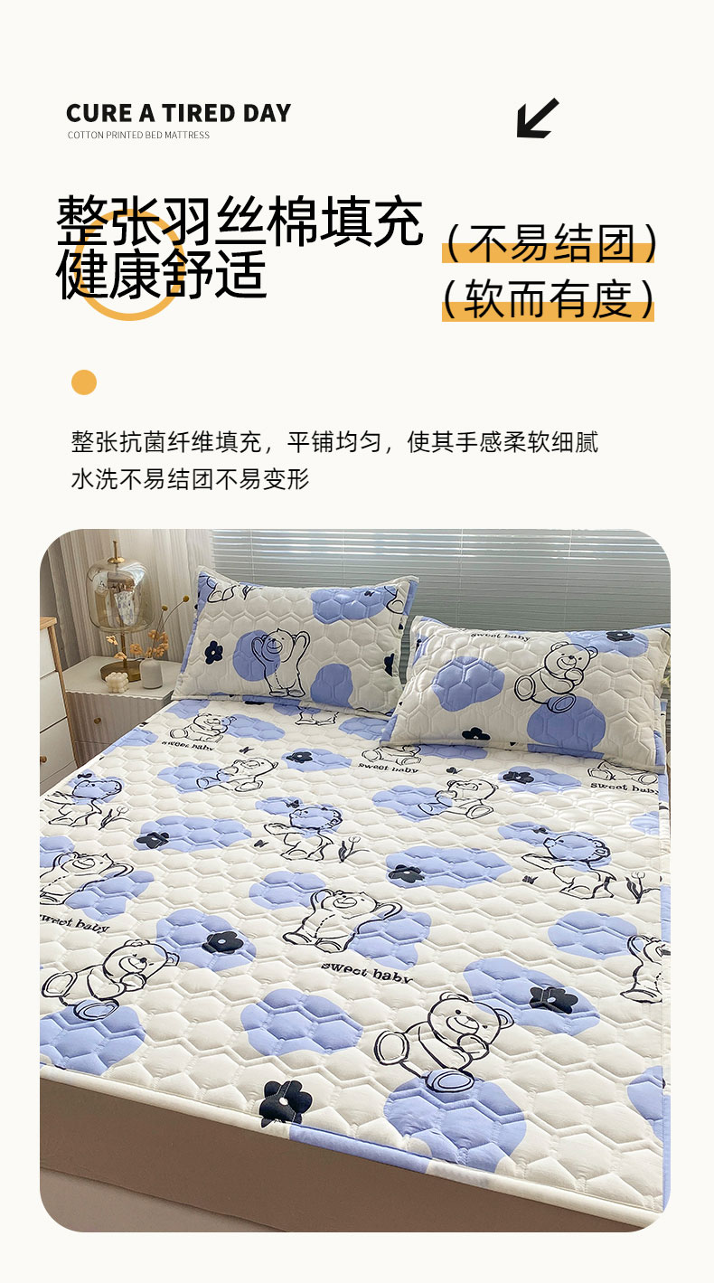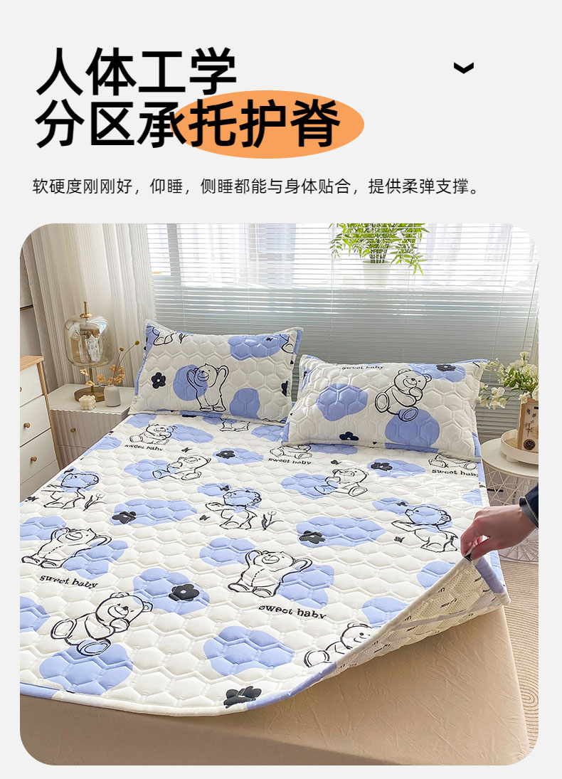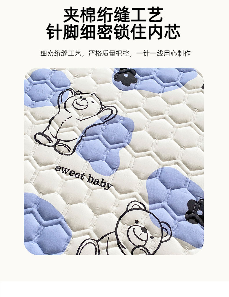 商品名称:恋绒家纺 2025新款A类纯棉(隔尿 防水)抗菌软床垫 奶油小熊