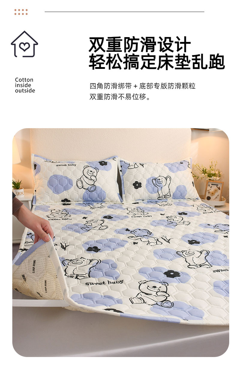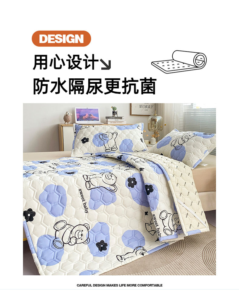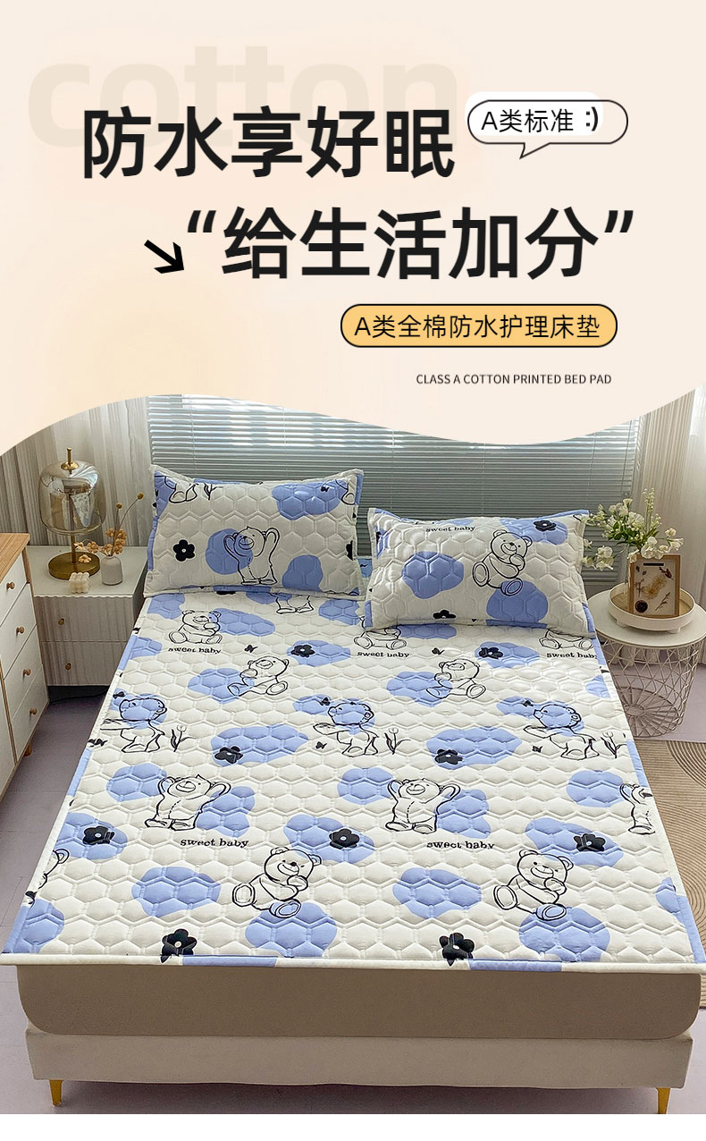 恋绒家纺 2025新款A类纯棉(隔尿 防水)抗菌软床垫 奶油小熊