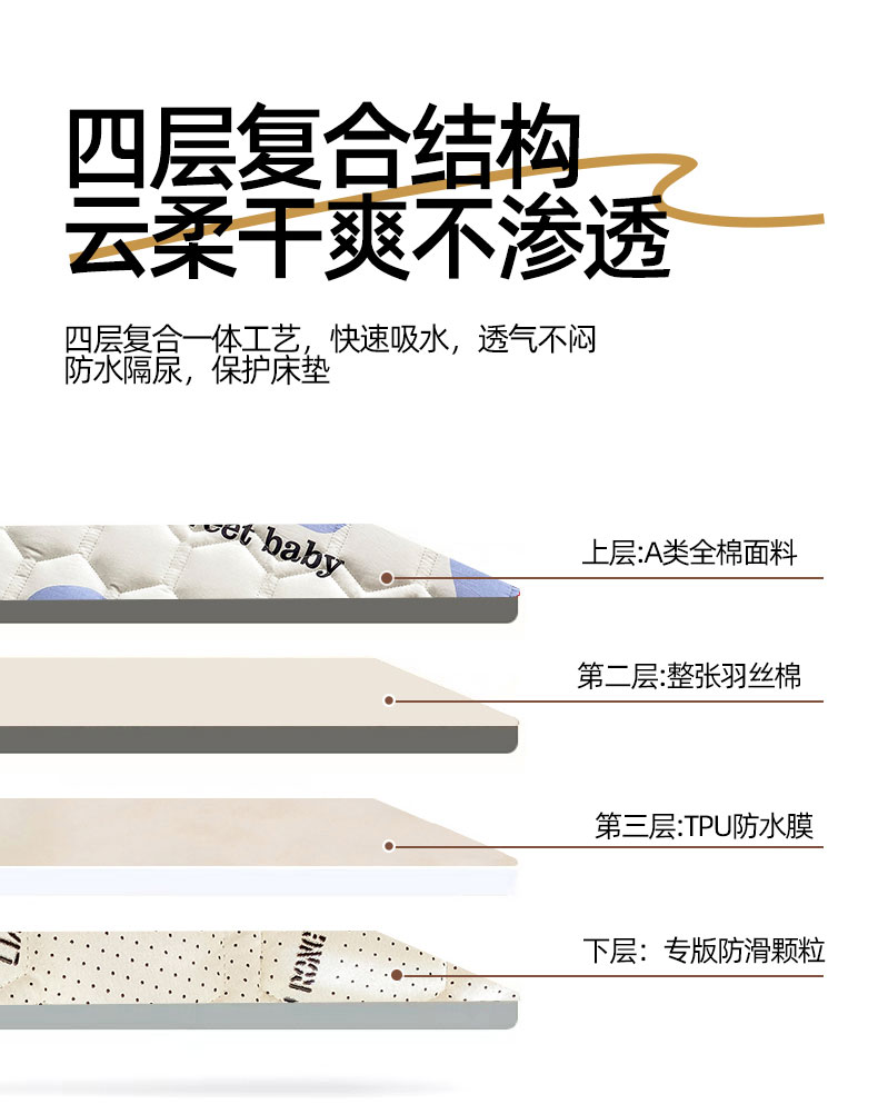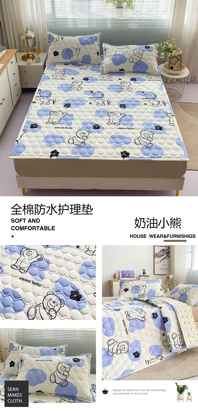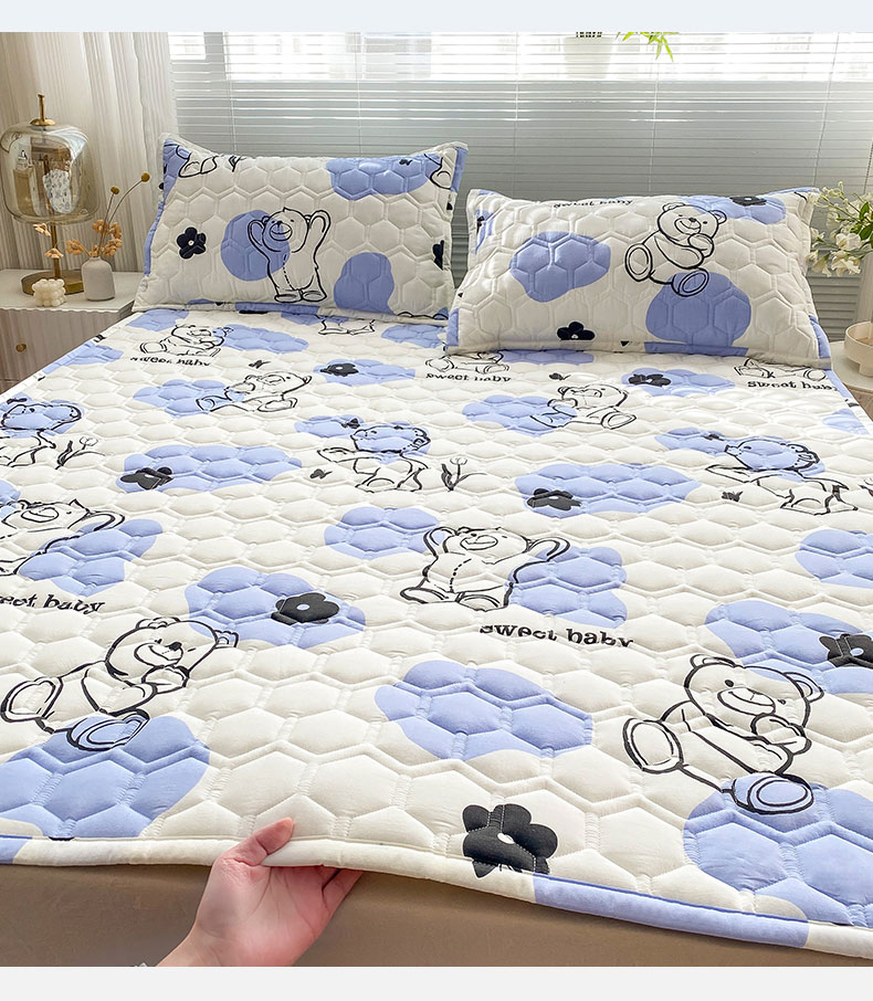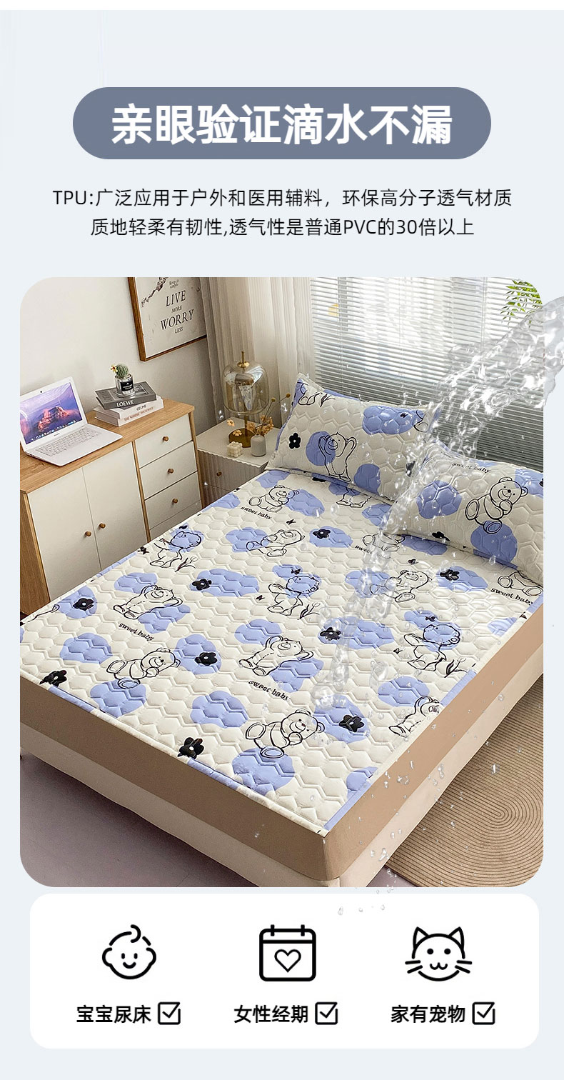 恋绒家纺 2025新款A类纯棉(隔尿 防水)抗菌软床垫 奶油小熊