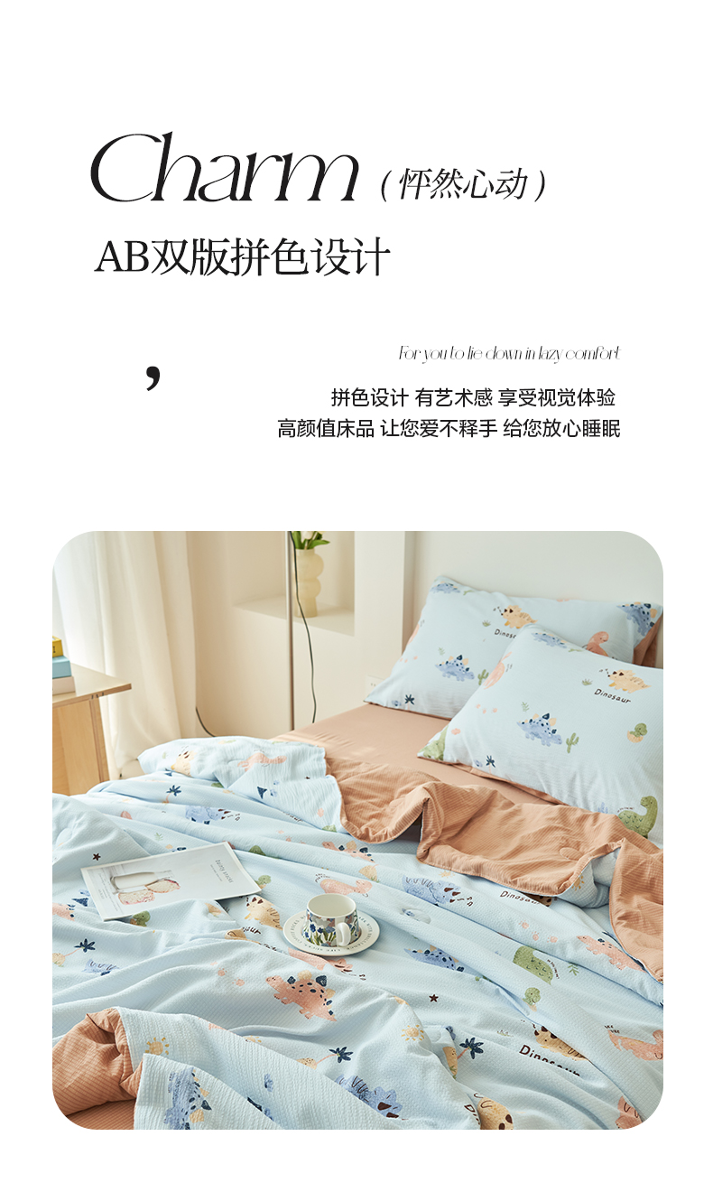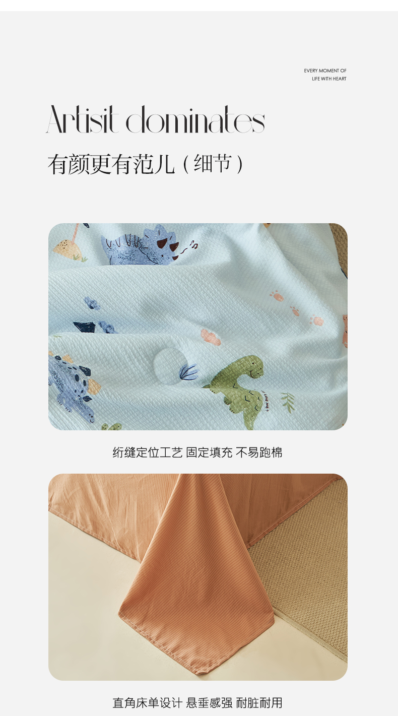 商品名称:畅销被业 2024新款A类泡芙棉印花夏被 恐龙乐园