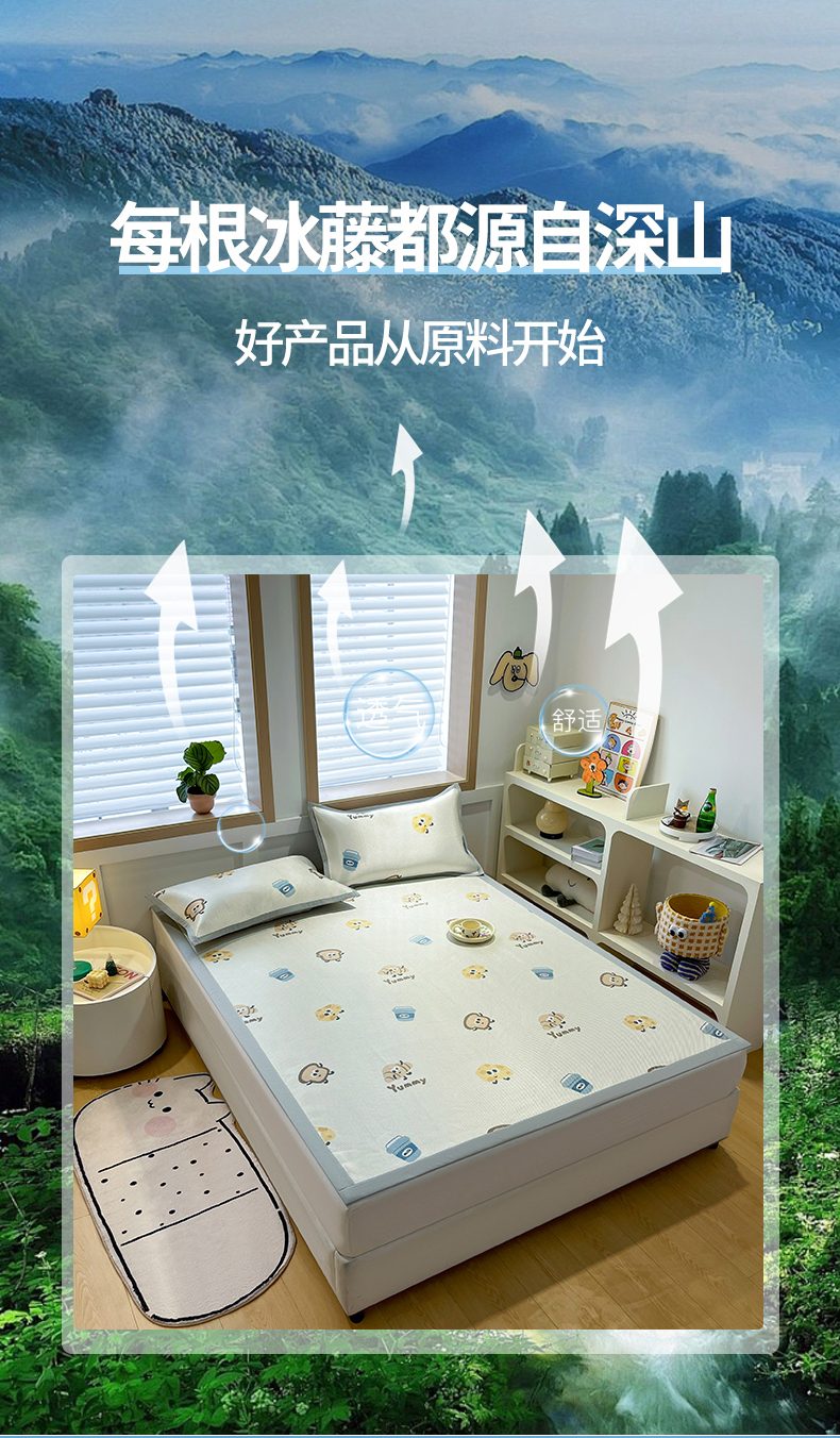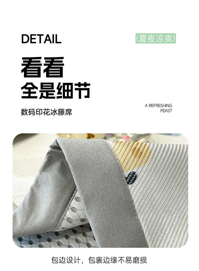 商品名称:佰亿莱 2024新款数码印花冰藤席 面包