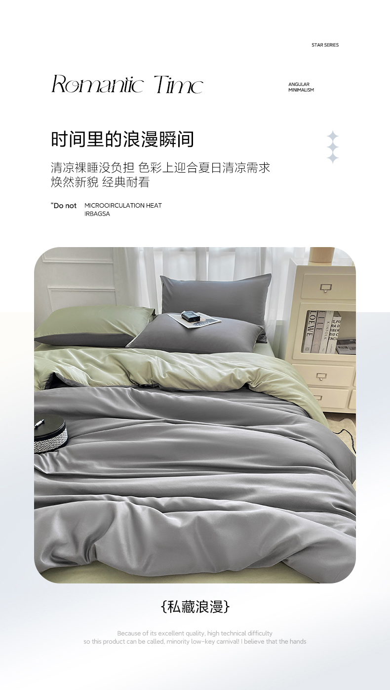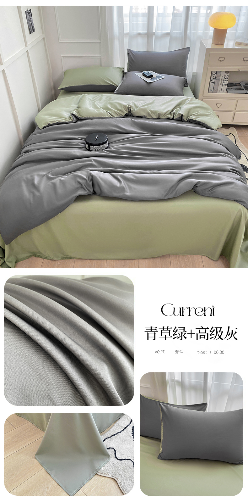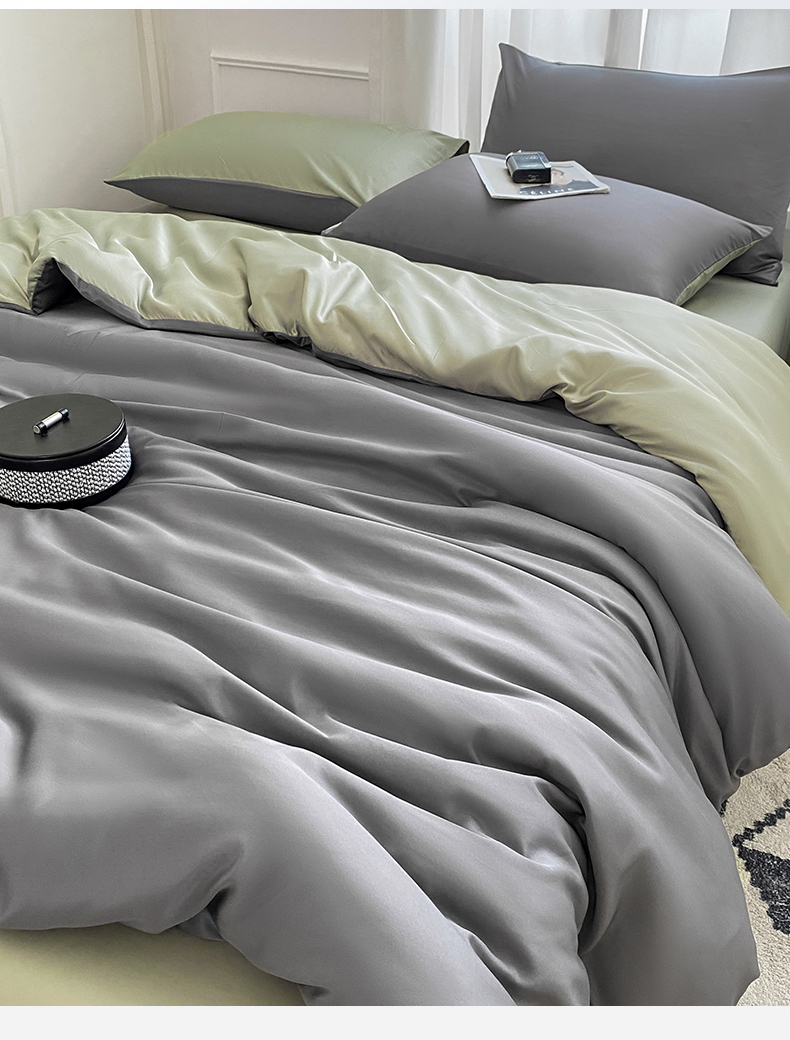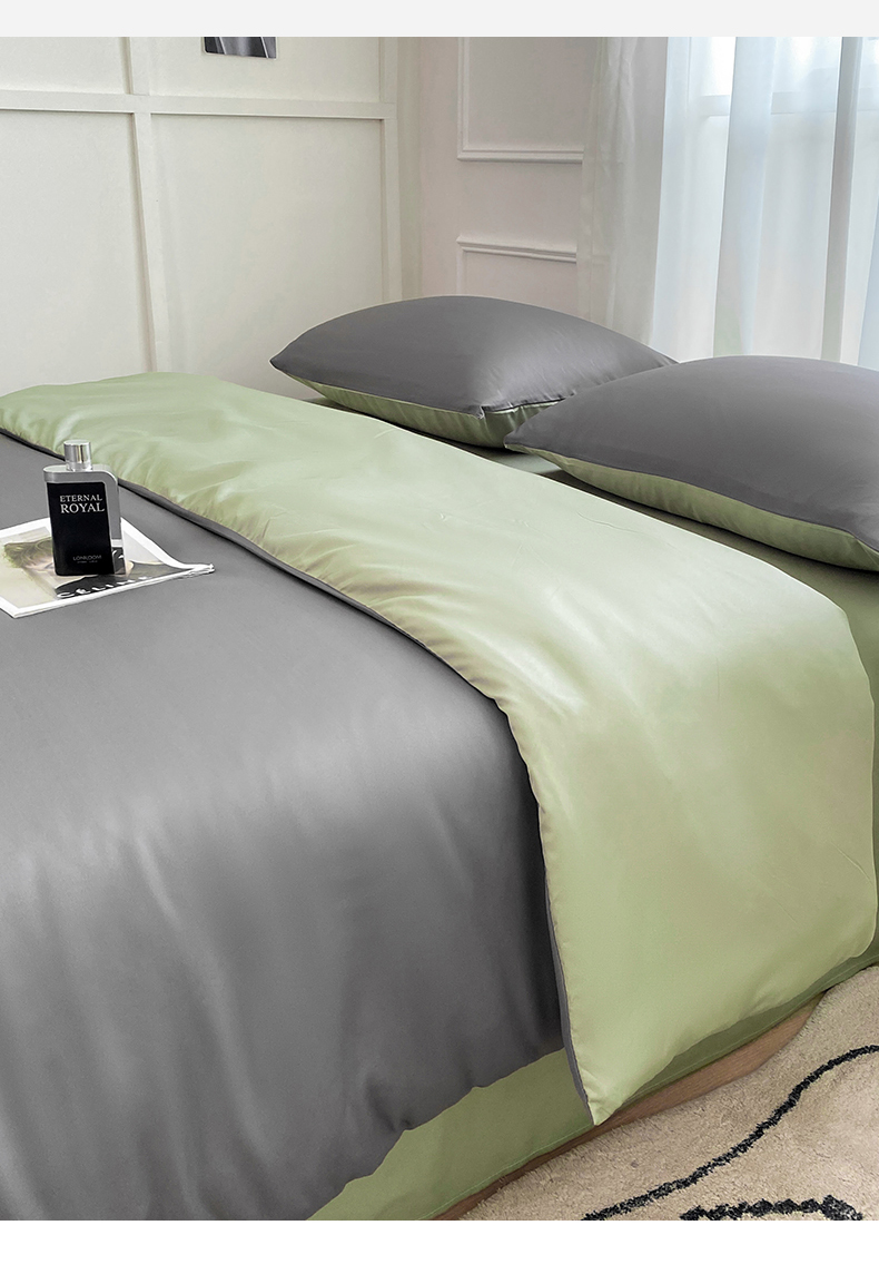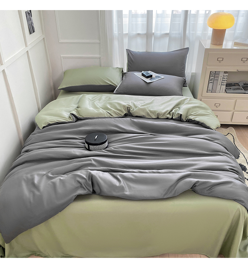 当前位置: 91家纺网 > 商品网购 > 床品套件 > 四件套 > 水洗真丝四件套 > 乐沐家纺 2024新款夏季水洗冰丝四件套水洗真丝纯色双拼单被套-风格二 青草绿+高级灰