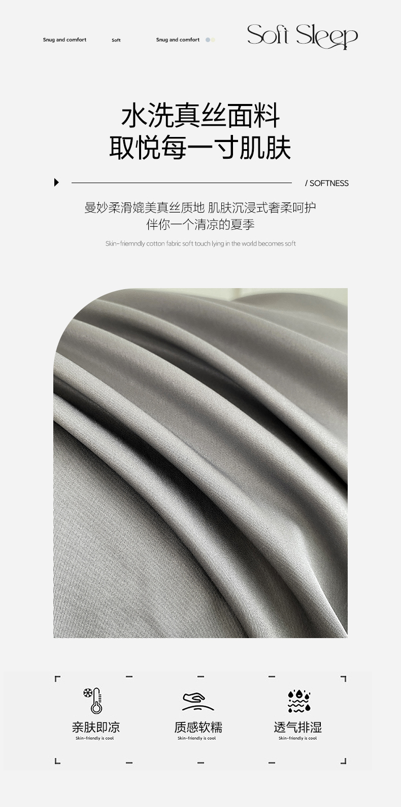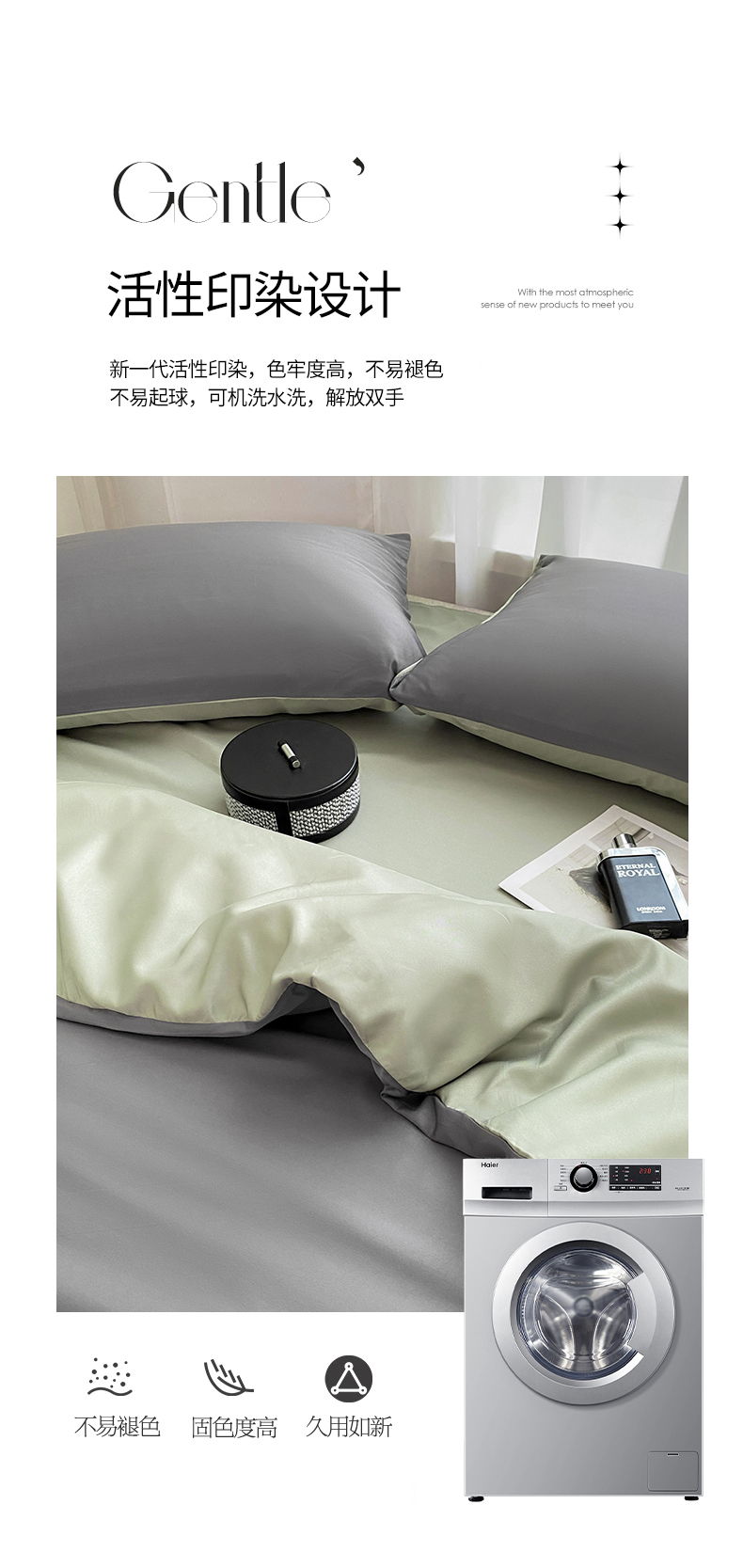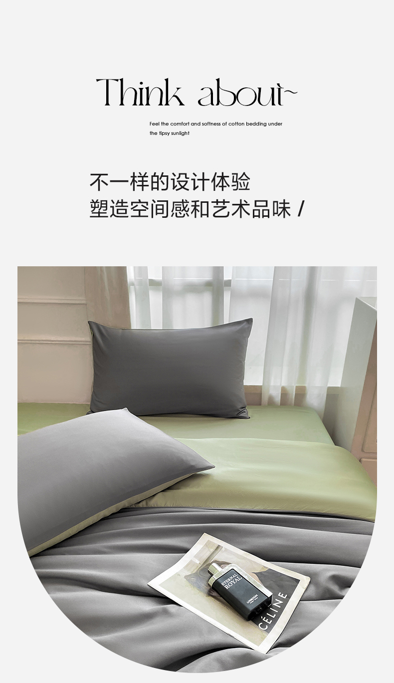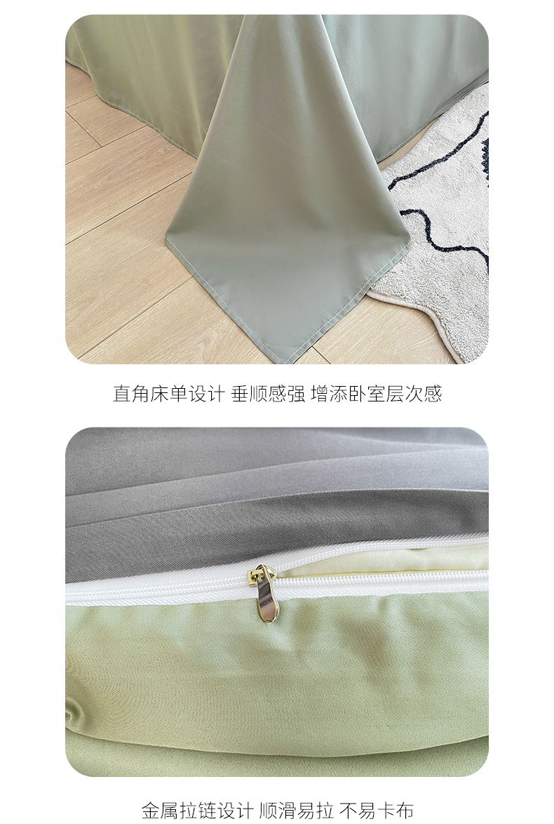 当前位置: 91家纺网 > 商品网购 > 床品套件 > 四件套 > 水洗真丝四件套 > 乐沐家纺 2024新款夏季水洗冰丝四件套水洗真丝纯色双拼单被套-风格二 青草绿+高级灰