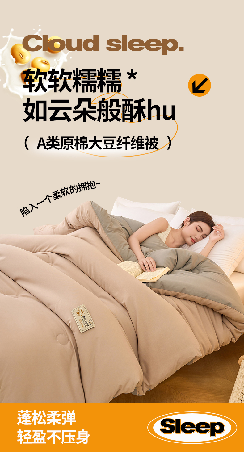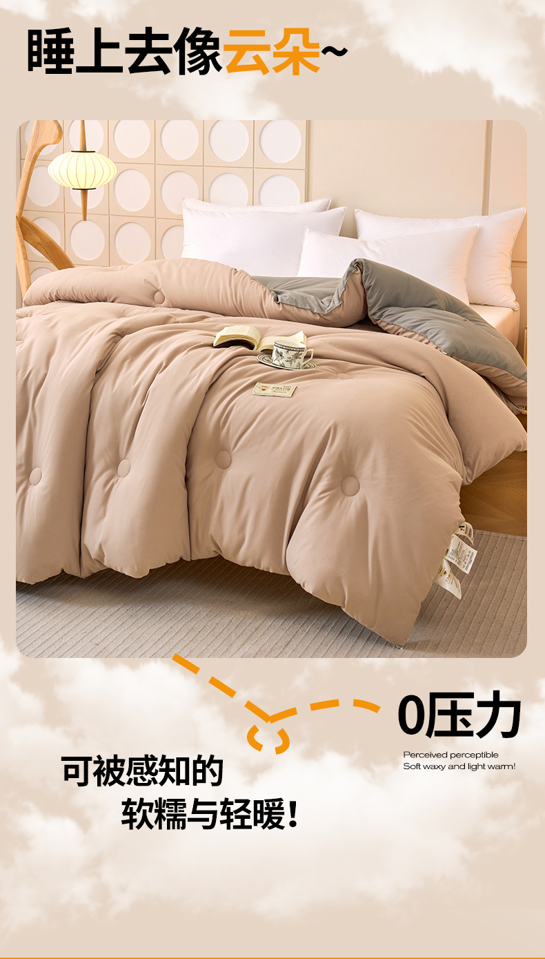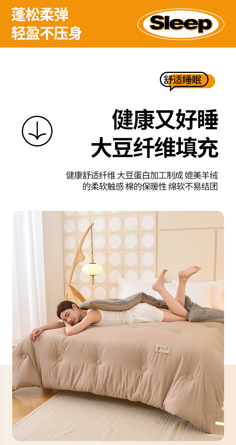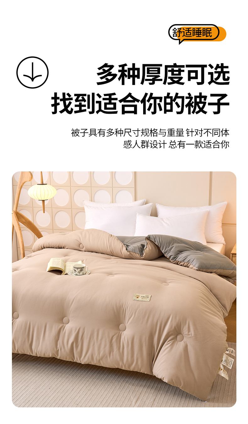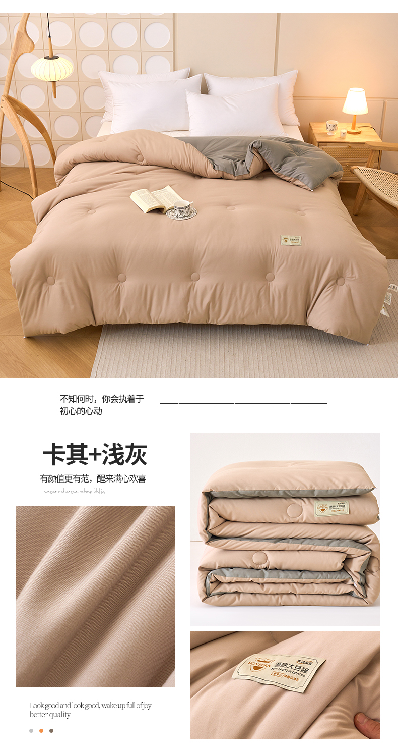 • 91家纺网 家纺一手货源 找家纺 梦恬佳 2024新款A类原棉亲肤棉大豆被夏被春秋被冬被 卡其+深灰