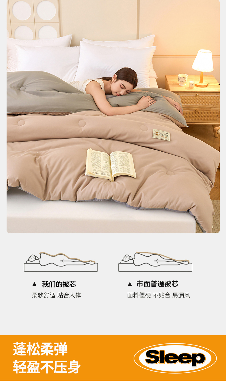 当前位置: 91家纺网 > 商品网购 > 被子 > 冬被 > 梦恬佳 2024新款A类原棉亲肤棉大豆被夏被春秋被冬被 卡其+深灰