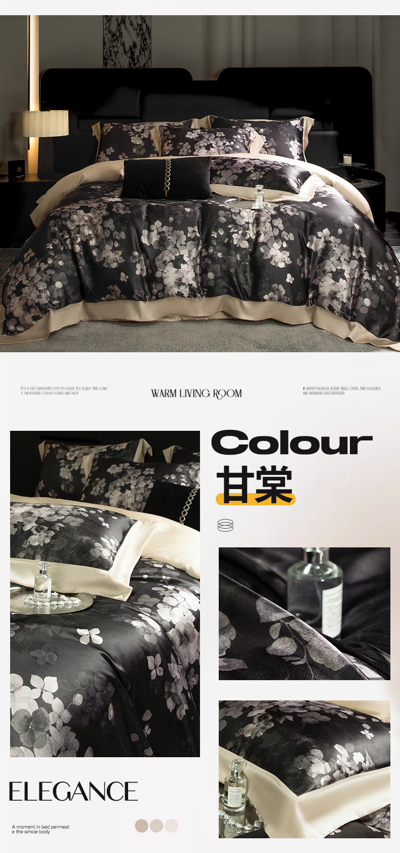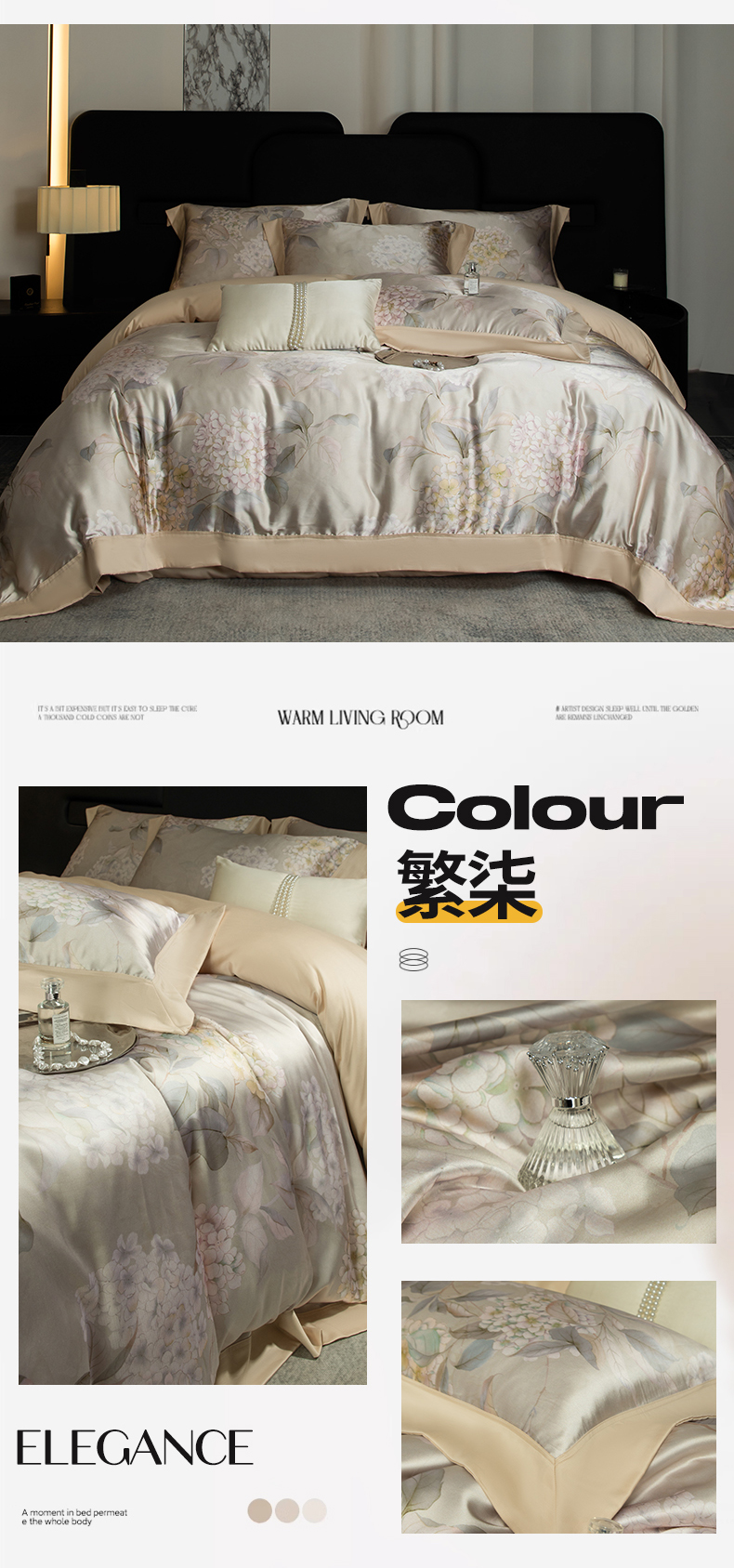 娇逸 2025新款天丝桑珍丝数码印花宽边高端四件套 罗姝