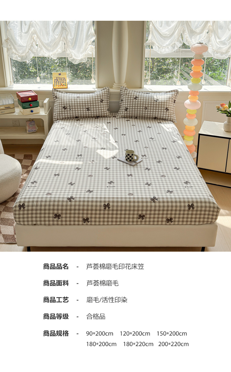 • 91家纺网 家纺一手货源 找家纺 佑佳家纺 2025年新款铂金棉芦荟棉单床笠,有配套枕套「支持定制各种尺寸」 蝴蝶结-灰