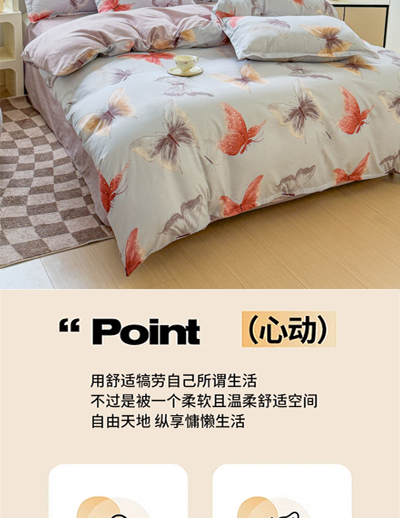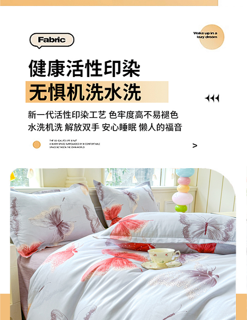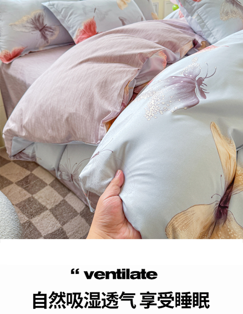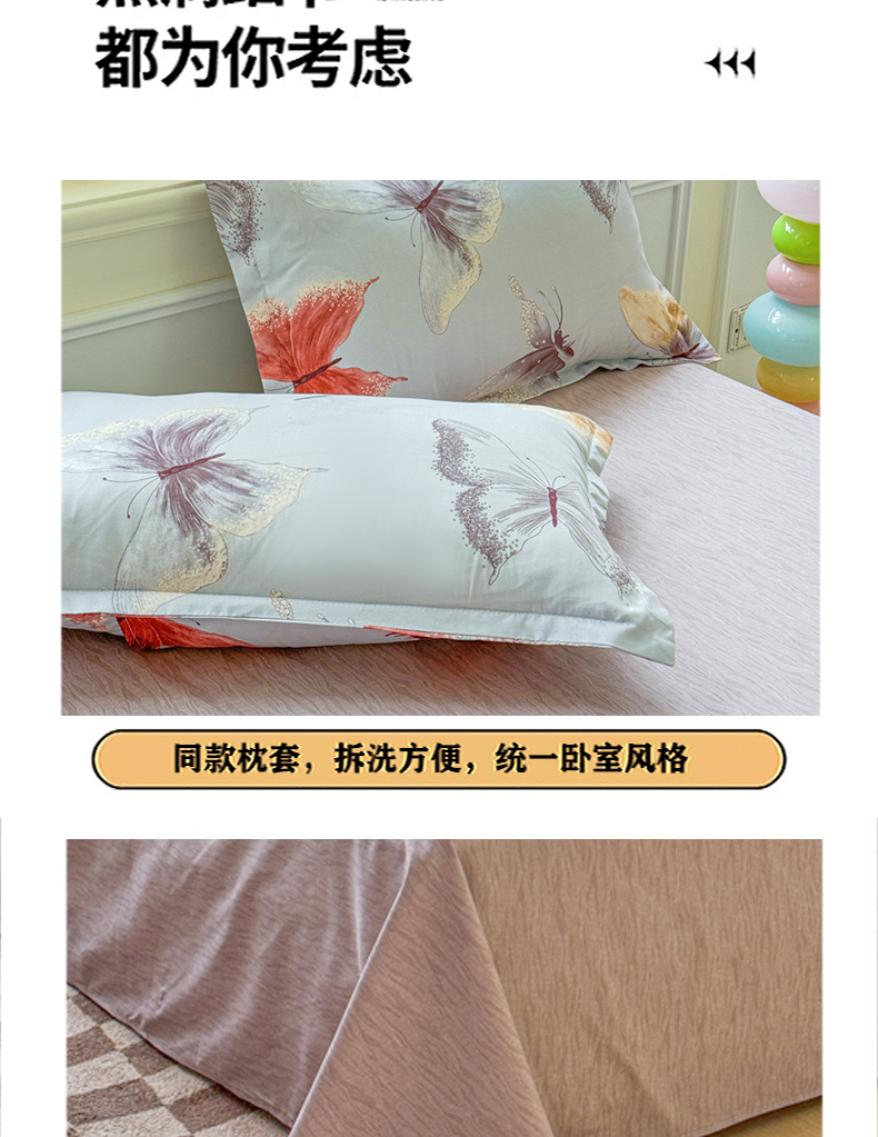 当前位置: 91家纺网 > 商品网购 > 床品套件 > 四件套 > 佑佳家纺 2025年新款铂金棉芦荟棉学生三件套四件套 单被套 单枕套「支持定做各种尺寸」 五彩蝶