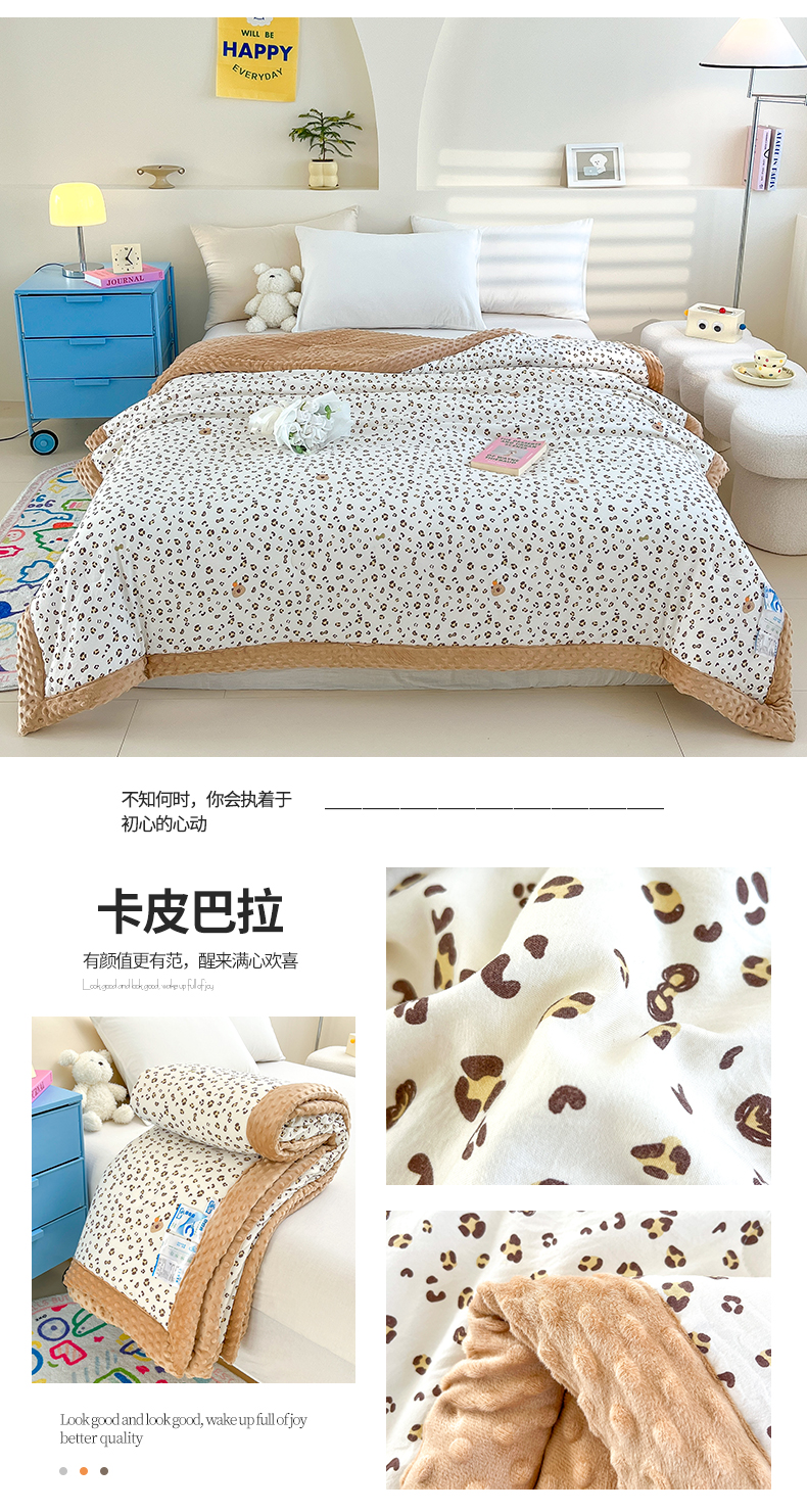 (总)爱宝被业 2025新款A类水洗棉双层纱豆豆绒被芯,豹纹卡皮巴拉,花开朵朵,花颜悦色,小兔花园,幸福草莓,熊趣时光,郁金香花开