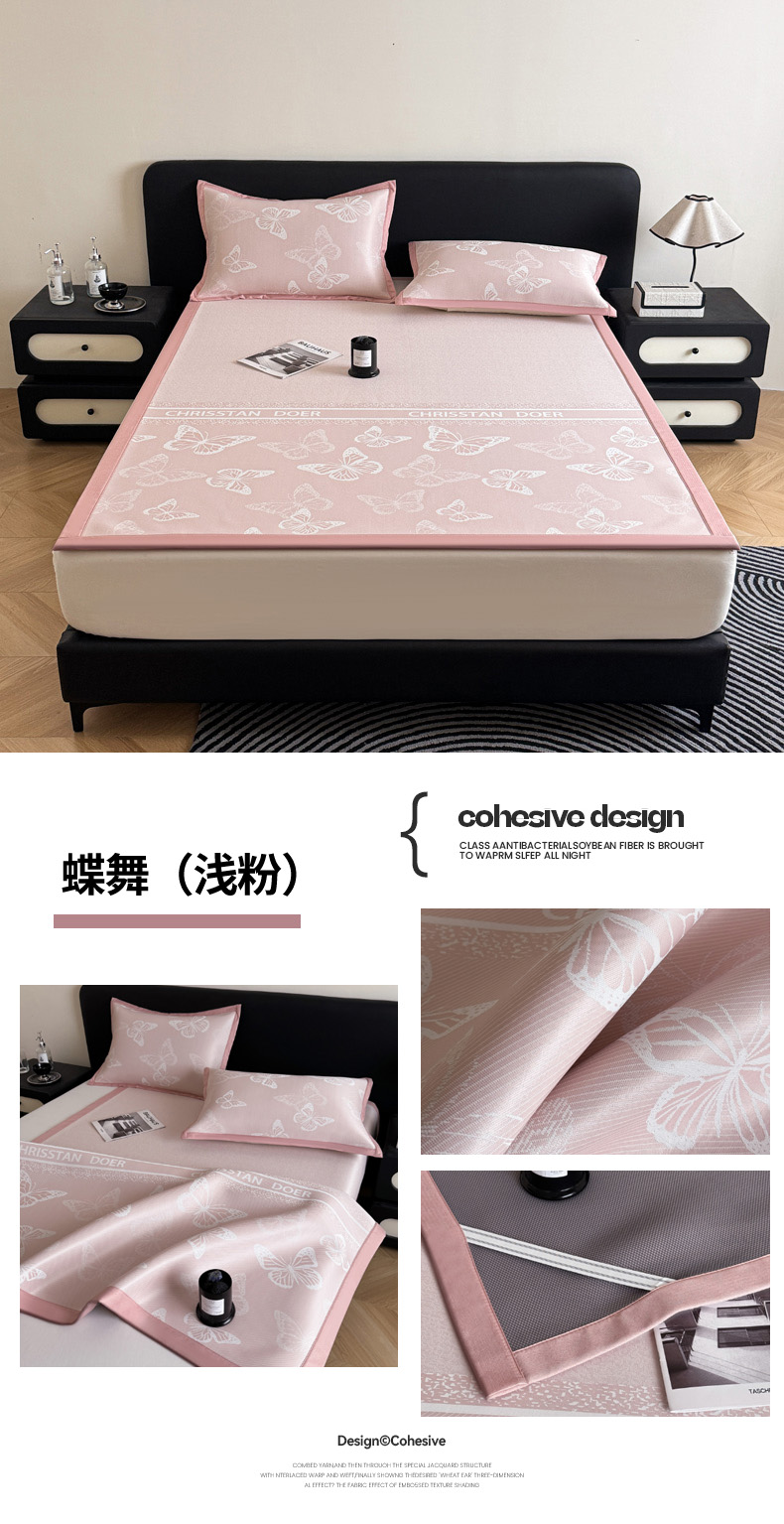 九花鹿 2025新款A类PE凉感提花冰丝凉席软凉席可水洗可机洗 花梦(浅粉)