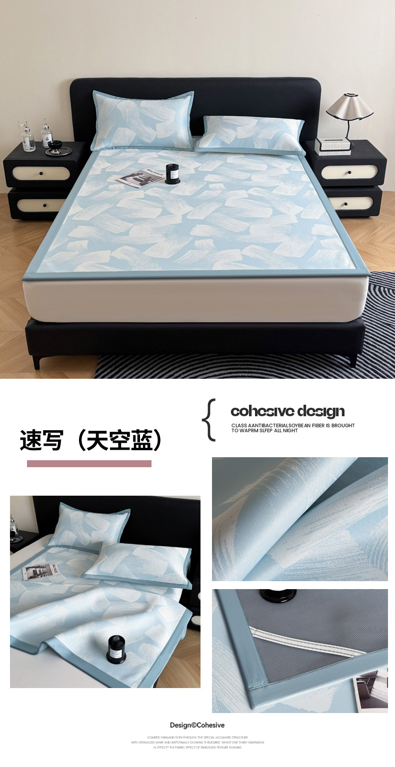 九花鹿2024新款A类大版碳光冰丝凉席床笠款三件套四件套,大版床笠款-熊宝贝
