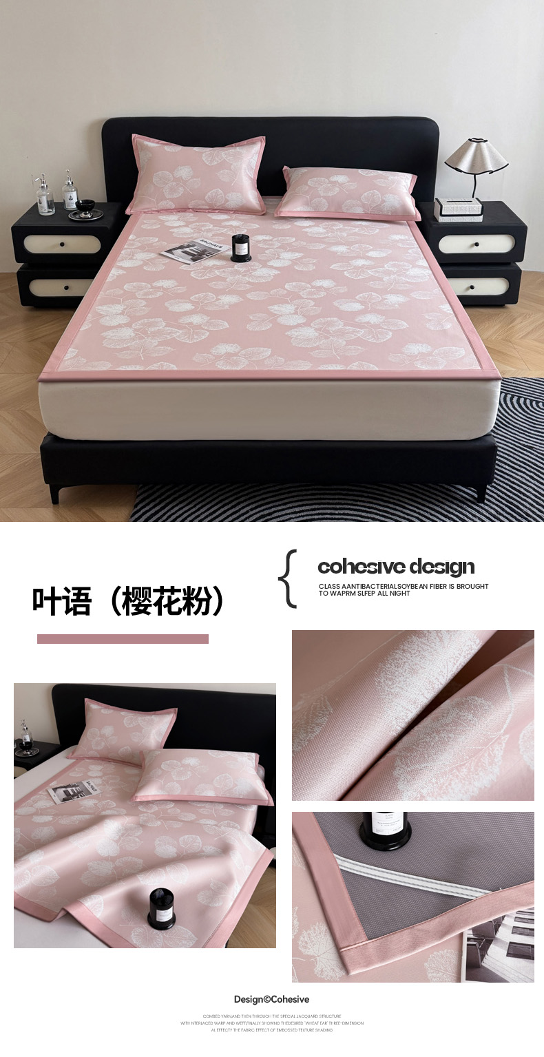 九花鹿2024新款A类大版碳光冰丝凉席床笠款三件套四件套,大版床笠款-甜心草莓