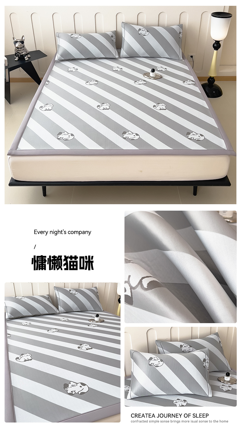 商品名称:全季家居 2025新款5A乙纶全PE卡通系列凉感软凉席席子 慵懒猫咪 床笠