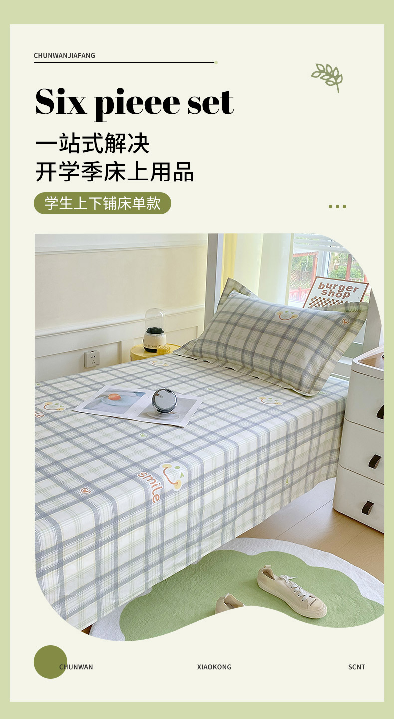 商品名称:春皖家纺 2025新款学生季全棉纯棉13070印花单床单 床单单件 喜笑颜开