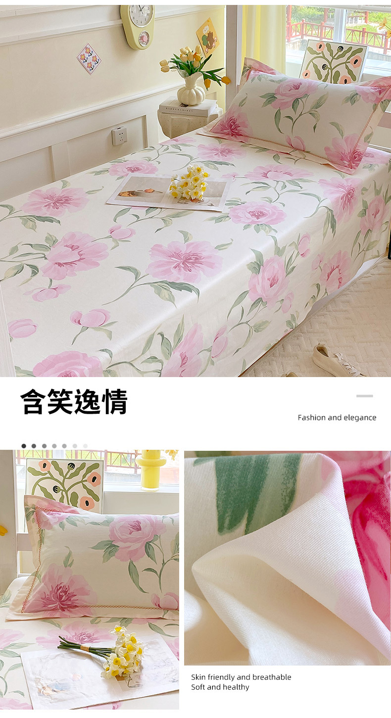 春皖家纺 2025新款学生季全棉纯棉13070印花单床单 床单单件 喜笑颜开