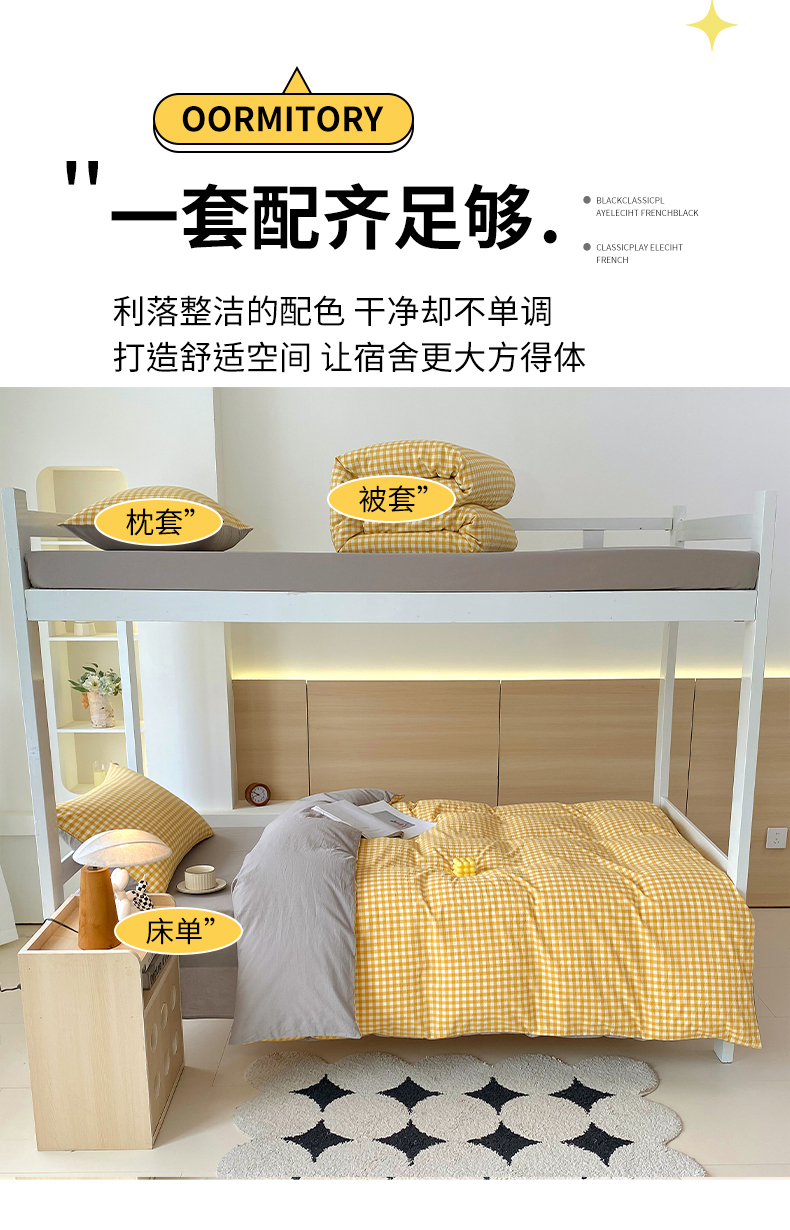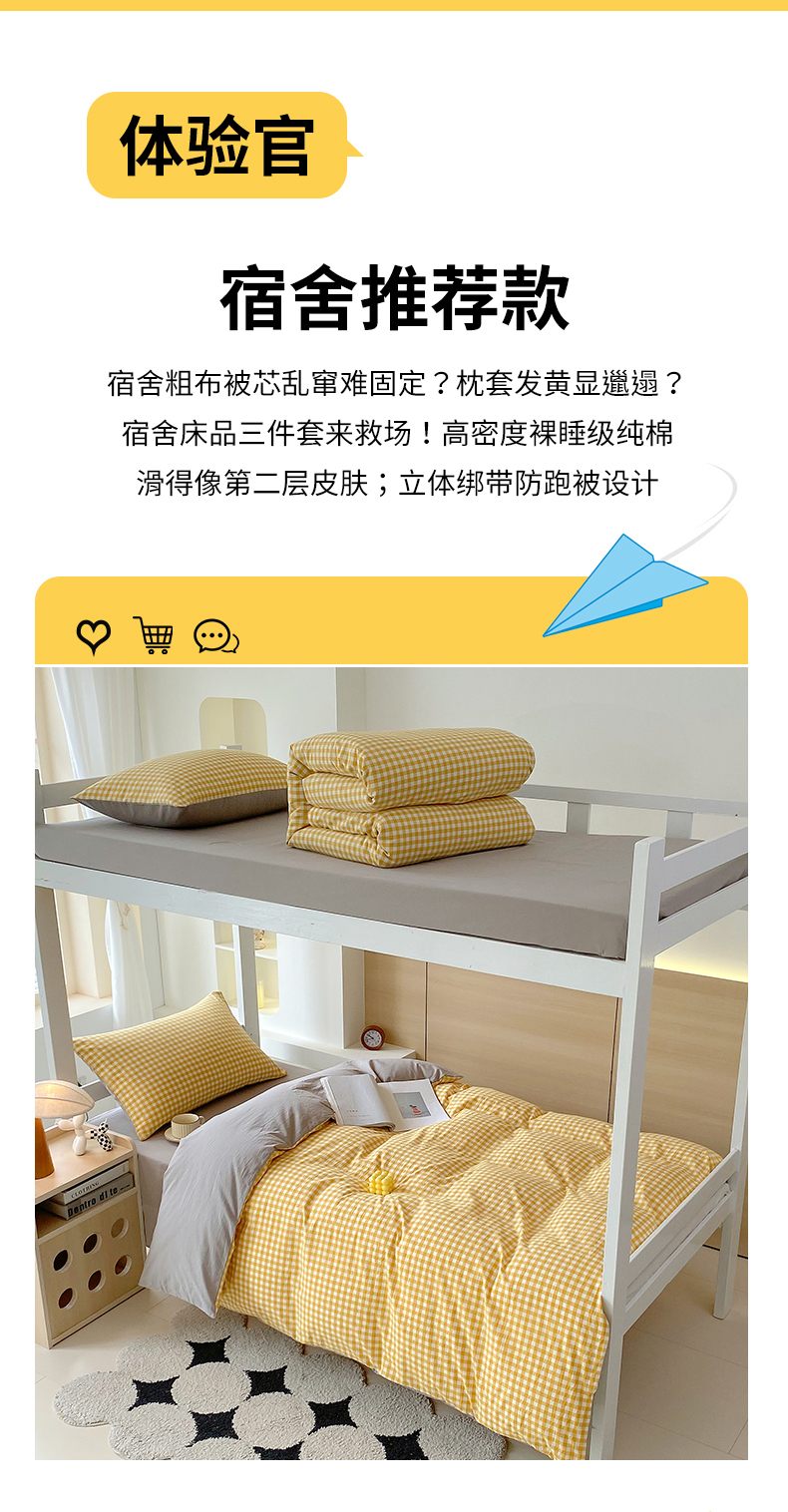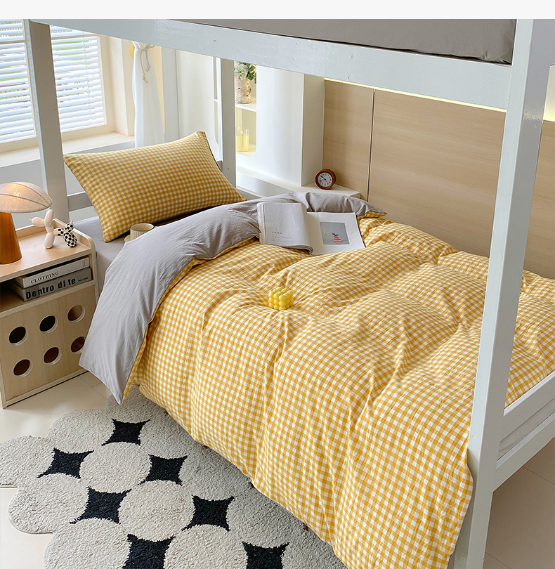 当前位置: 91家纺网 > 商品网购 > 床品套件 > 四件套 > 春皖家纺 2025新款AB棉全棉亲肤水洗棉学生三件套四件套 朱羽-黄格