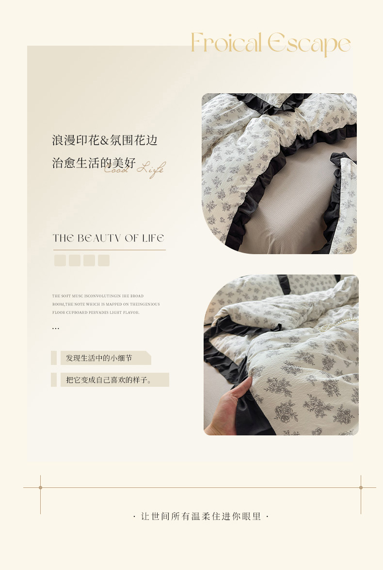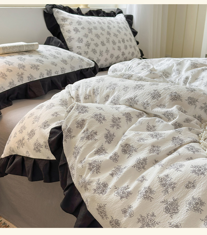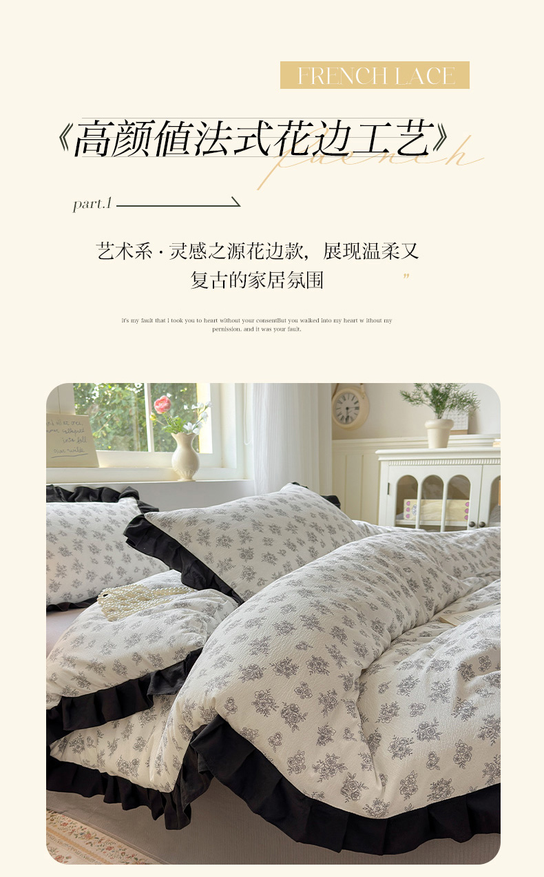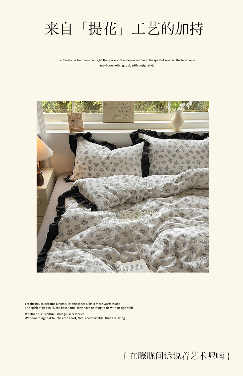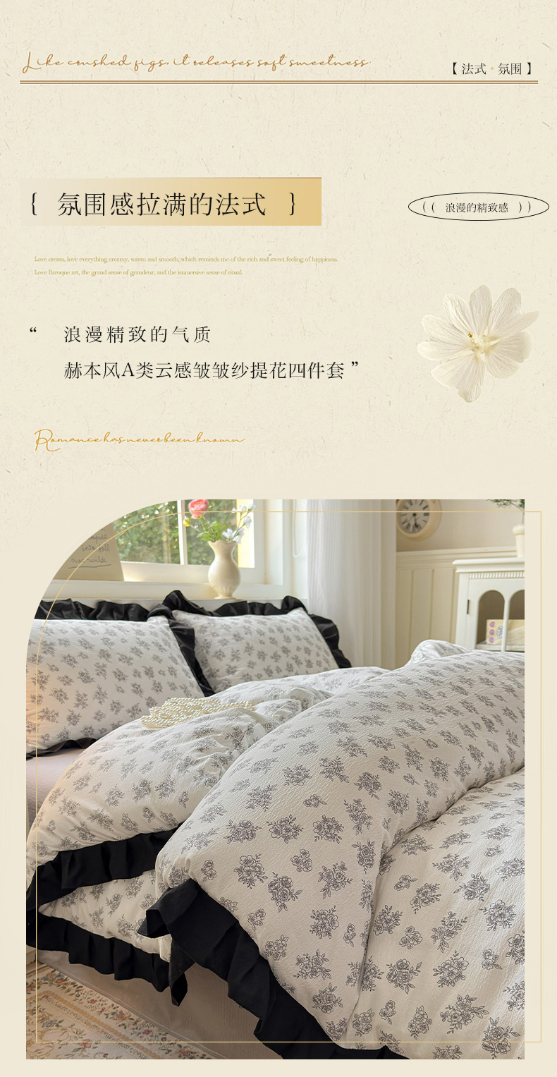 当前位置: 91家纺网 > 商品网购 > 床品套件 > 四件套 > 其它四件套 > 喜颜 2025新款云感提花皱皱棉爆款花边四件套-赫本风 繁花