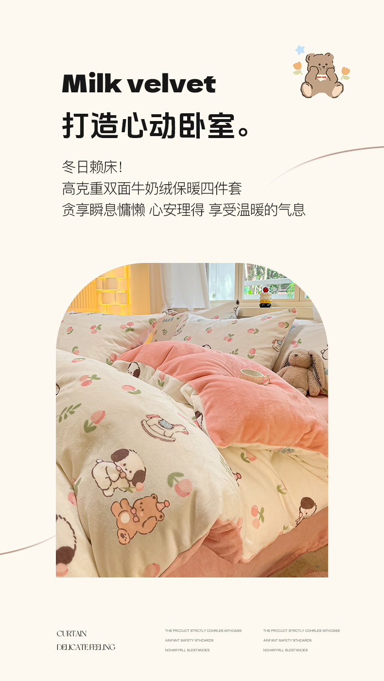 当前位置: 91家纺网 > 商品网购 > 床品套件 > 四件套 > 牛奶绒四件套 > 铭宣 2025新款高克重牛奶绒印花保暖四件套床单床笠单被套款 秘密花园